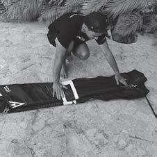 STORING YOUR WING - Ensure the wing is completely dry and free of sand or debris. Roll it up according to the instructions, put it in the designated bag, and store it in a dry, cool, dark place. Avoid hard objects, e.g., Miniboom handles pressing against the window material may stretch or puncture the fabric. Avoid storing it in direct sunlight or a hot temperature environment.