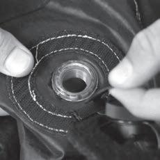 8. Reach straight into the zipper and reseat the valve base. Avoid twisting it. Make sure no bladder material is pinched between the hole and valve base. Close the zipper.