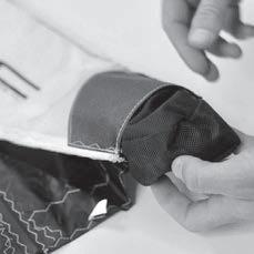 12. Deflate the LE and at the wing tips, stuff the 10 cm of the end of the bladder back in the sleeve. Then fold the wing tips, including the remaining bladder matching the textile sleeves. Be sure to fold Velcro facing out. Secure Velcro to the inner wall.