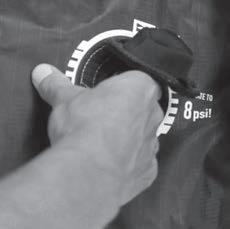 7. Open valve cap, attach the pump and inflate the leading edge until it starts to register on the pump pressure gage. This is the moment when you can inspect the wing to see if there is a twist in the bladder. A twisted bladder can damage your wing and affect wing performance. If there is no twist, inflate to 8 PSI maximum.