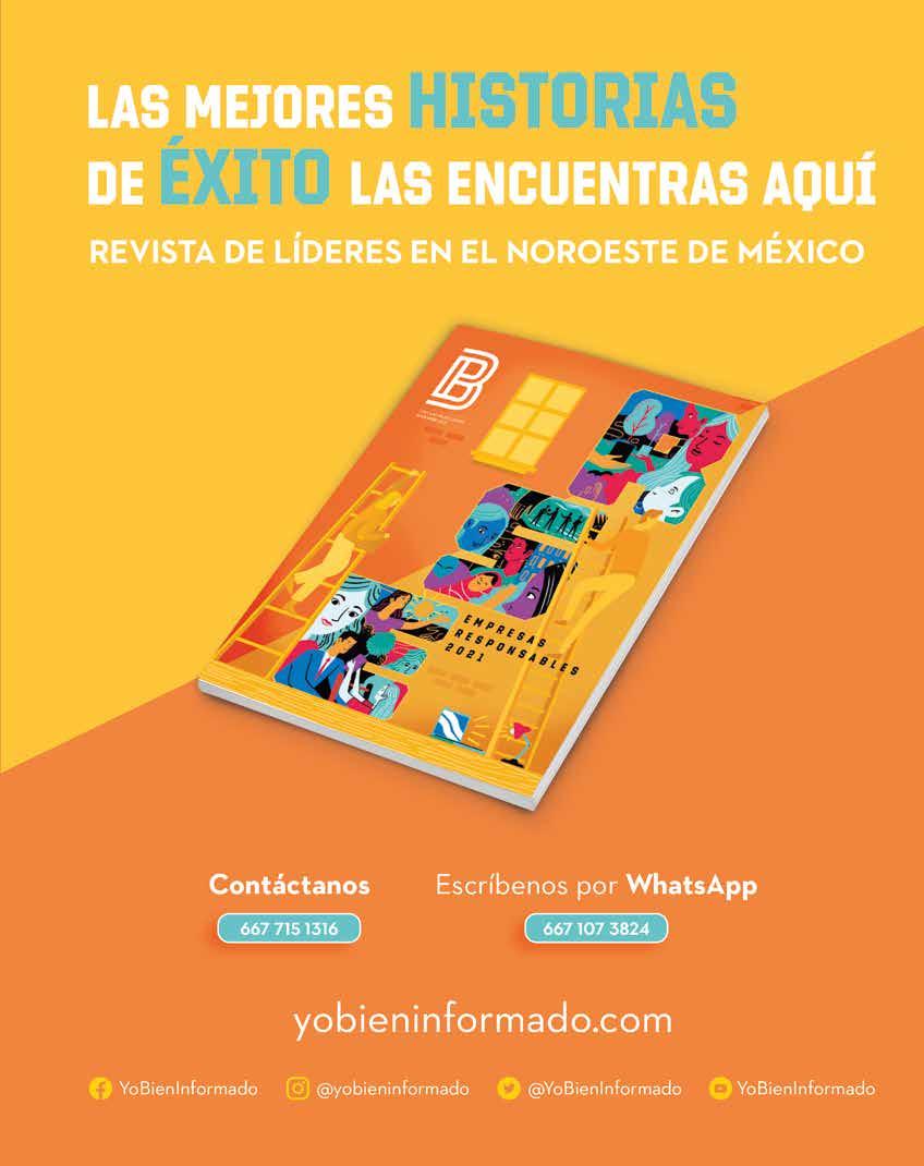 BIEN INFORMADO es editada, publicada y distribuida por Bien Informado S.A. de C.V., Ciudad de Hermosillo 1382, Las Quintas, C.P. 80060 Culiacán, Sinaloa, México Tel: +52 (667) 715 13 16 | Fax: +52 (667) 715 13 19 | Lada sin costo: 01 800 001 5650 | infosinaloa@yobieninformado.com | www.yobieninformado.com