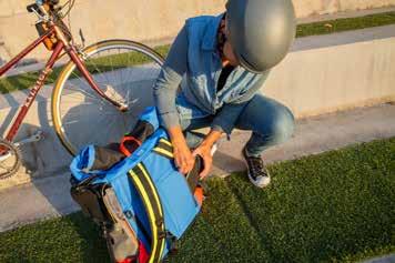 Cada mochila es entregada por Irlanda que llega en bicicleta a su destino. todos los modelos son hechos a mano por Irlanda Muñoz.