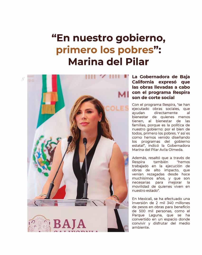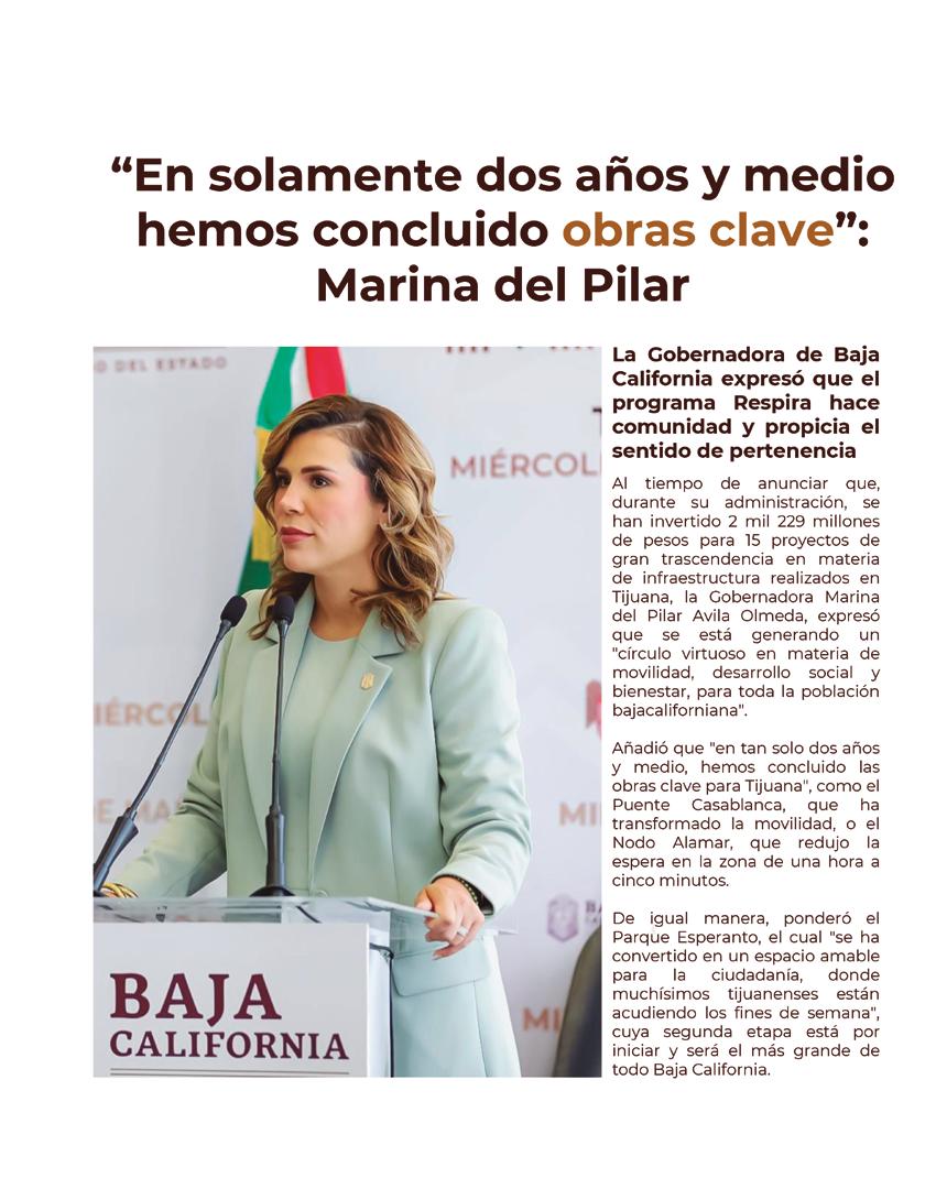 Con el objetivo de que las familias pasen más tiempo juntas, se impulsan proyectos estratégicos como el Nodo Morelos, que pronto permitirá reducir los tiempos de espera de una hora a un máximo de cinco minutos, indicó la gobernadora de Baja California, Marina del Pilar Avila Olmeda.