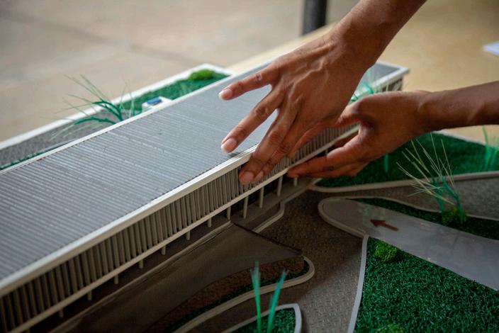 No espaço educativo, que fica no térreo, tem uma maquete do Pavilhão da Bienal.