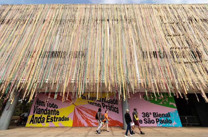 O título da 36ª Bienal é Nem todo viandante anda estradas – Da humanidade como prática. Este é o cartaz da 36ª Bienal.
