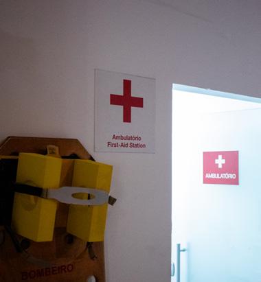 No primeiro andar tem um ambulatório disponível para os visitantes. Também tem uma ambulância na área externa da Bienal.