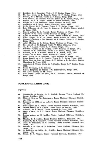 Poetikon, de J. Schneider. Teatro E. F. Burian, Praga, 1964. Da Casa Morta, de L. Janacek. Teatro E. F. Burlan, Praga, 1964. Polícias, de S. Mrozek. Teatro E. F. Burlan, Praga, 1964. Rosa Tatuada, de Tenessee Williams. Teatro E. F. Burlan, Praga, 1964. Revisor, de N. V. Gogol. Teatro O. Stibor Olomouc, 1965. Fidelio, de L. can Beethoven. Teatro Nacional de Praga, 1965. Anti-Orfeu, de J. Sotola. Teatro Vinohrady, Praga, 1965. O Rei Morre, de E. Tones(;o. Teatro E. F. Burian, Praga, 1965. Pote Milagroso, de G. Lane, J. Voskovac, J. Werich. Teatro Musical de Praga, 1965. Raposa Astuta, de L. Janecek. Teatro Nacional de Praga, 1965. Rigoleto, de G. Verdi. Teatro Nacional de Praga, 1965. Rapto do Harém, de W. A Mozart. Teatro Estatal de Colonia, 1965. Flauta Mágica, de W. A. Mozart. Teatro Estatal de Colonia, 1965. Quarenta Culpados e Um Inocente, de J. Danek. Teatro E. F. Burlan, Praga, 1966. Albert Herrlng, de B. Brltten. Teatro Nacional de Praga, 1966. E o Amor?, de G. Schisgal. Teatro O. Stibor Olomouc, 1966. 72, de F. Lagner. Teatro E. F. Burlan, Praga, 1966. Benvenuto Cellini, de H. Berlioz. Teatro Nacional de Praga, 1967. Meteoro, de F. Durrenmatt. Teatro E. F. Burian, Praga, 1967. Platonov, de A. P. Cechov. Teatro E. F. Burlan, Praga, 1967. Carmen, de G. Bizet. Teatro Estatal de Colonia, 19067. Duas Viúvas, de B .Smetlana. Teatro Nacional de Praga, 1968. Eugen Pnegin, de A S. Pushkin. Teatro E. F. Burlan, Praga, 1968. Havia Festa na Praça de Roma, de F. Gelbart e P. Shevelore. Teatros Municipais de Praga, 1968. Anunciação à Virgem Maria, de P~ Claudel. Teatro E. F. Burlan, Praga, 1968. Bodas de Sangue, de S. Szokalay. Edison. Programa de Poesias, T.V. Tchecoslovaca, Praga, 1968. Snr. Krob Imortal, de M. Frisch. Não Haverá Guerra de Tróia, de J. Giraudoux. Teatro Nacional de Praga, 1969.