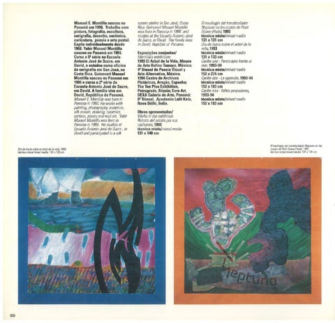 screen atelier in San José, Costa Rica. Guinovart Manuel Montilla was bom in Panama in 1986 and studies at the fscuela Antonio José de Sucre, in David. The family lives in David, Republic of Panama. Exposições conjuntasl Montillas exhibitions 1993 EI Arbol de la Vida, Museo de Arte Rufino Tamayo, México; 4ª Bienal de Poesía Visual y Arte Alternativo, México. 1994 Centro de Archivos Pictóricos, Aragão, Espanha; The Ten Plus Exhibition, Petrogrado, Rússia; Euro Art, DEXA Galería de Arte, Panamá; 8ª Trienal, Academia Lalit Kala, Nova Délhi, índia.