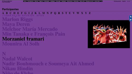 A Fundação Bienal de São Paulo lamenta o falecimento de Emanoel Araujo e Beatriz Mendes Gonçalves Pimenta Camargo, em setembro de 2022, e de Danilo Santos de Miranda, em outubro de 2023.