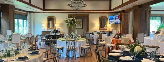 Warm, inviting, and full of character, the Black Bear Pub is the perfect spot for a pre-event gathering or an intimate celebration. With its rich wood interiors, vaulted ceilings, and expansive windows, the space offers a cozy lodge feel with scenic views. A polished full-length bar, flexible seating, and unique mountaininspired décor make it ideal for cocktail hours, club socials, or small private events.
