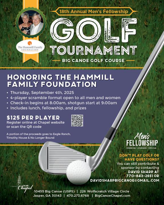 Check in begins at 8am, shotgun start at 9am Includes lunch, fellowship, and prizes