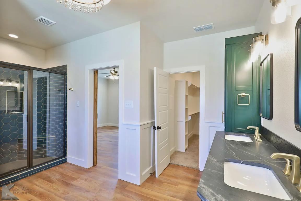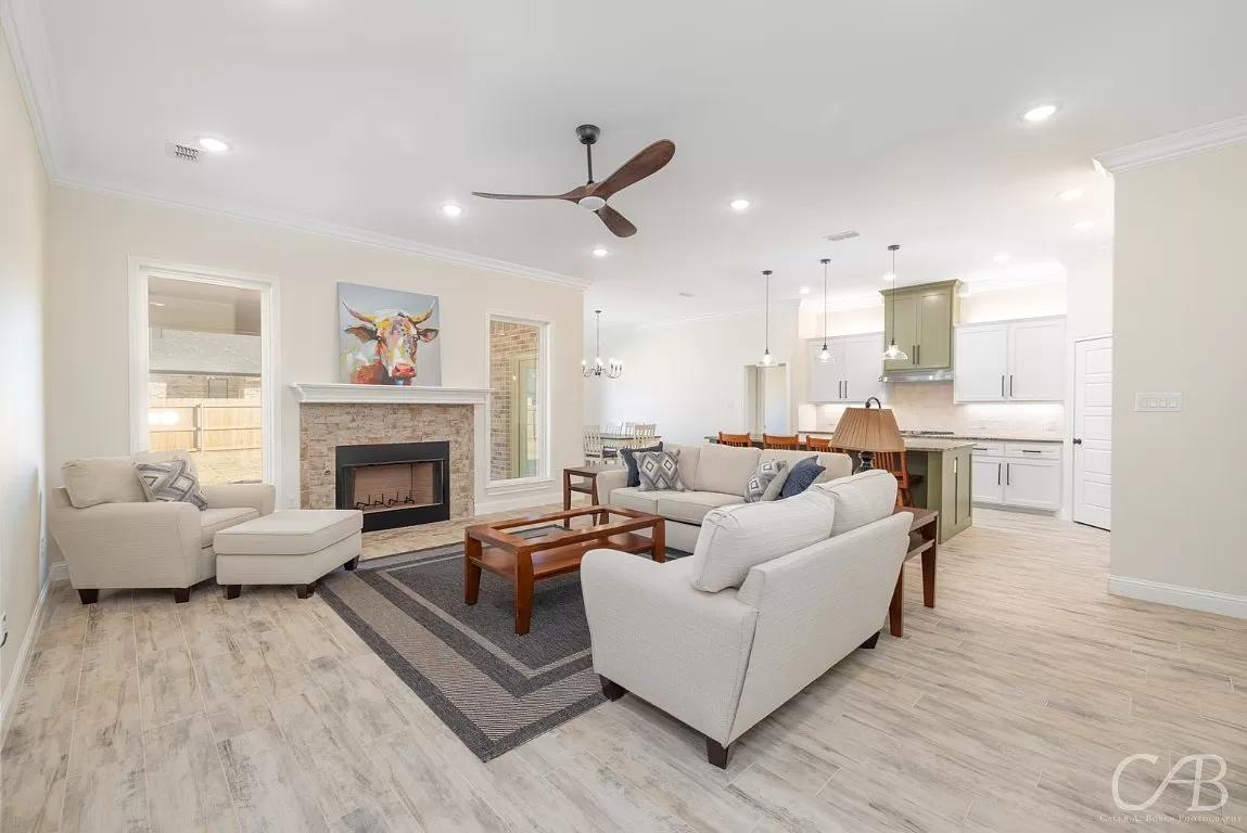 CHECK OUT THIS AMAZING HOME BY TIM AKENS AND WEST TEXAS CUSTOM BUILDERS. THIS 4BEDROOM, 2.5-BATHROOM HOME BLENDS MODERN AND TRADITIONAL STYLES THE KITCHEN FEATURES CUSTOM CABINETRY, LEATHER GRANITE, A 10-FOOT ISLAND, AND GE PROFILE APPLIANCES. THE PRIMARY BEDROOM OFFERS A LUXURIOUS ENSUITE WITH A DOUBLE SHOWER, AND THE LIVING ROOM INCLUDES A GAS STARTER FIREPLACE. THE HOME ALSO BOASTS A LARGE COVERED PATIO WITH A SECOND FIREPLACE, TWO FANS, AND A GAS HOOKUP FOR A GRILL