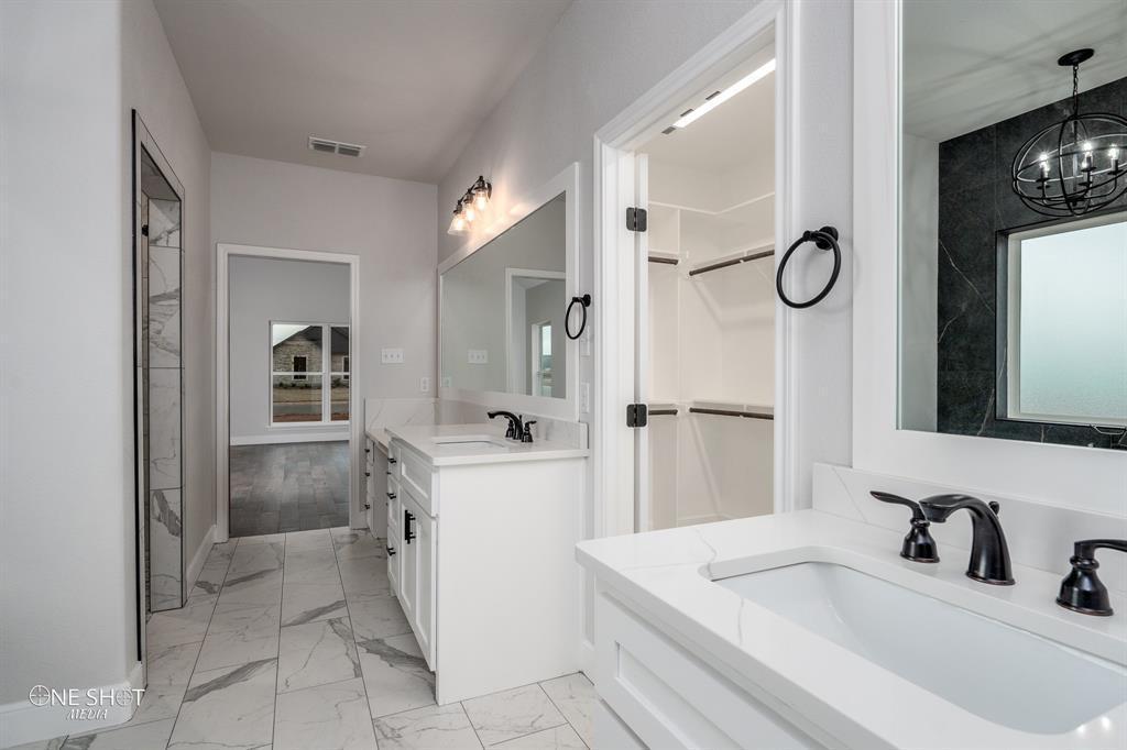 FEATURES STUNNING CEILING WORK, LINEAR ELECTRIC FIREPLACE, FREESTANDING TUB, DUAL SHOWER HEADS IN MASTER, HIDDEN SECURITY AREA, AND AN OVERSIZED GARAGE WITH WORK SPACE. INCLUDES GAS TANKLESS WATER HEATER, UTILITY SINK, SPRINKLERS, AND SPACE FOR A FREEZER.