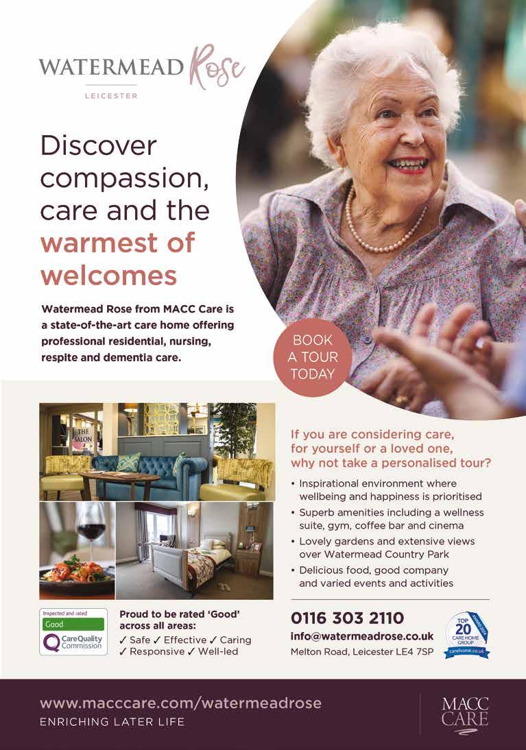 Options Leicestershire and Rutland is published by Octagon Design and Marketing Ltd with editorial contributions from University Hospitals of Leicester NHS Foundation Trust, Leicestershire County Council, Leicester City Council, Rutland County Council, Leicestershire Partnership NHS Trust, the CQC, Age UK Leicester Shire & Rutland, Alzheimer’s Society and the NHS. The editorial contributors have not vetted the advertisers in this publication and accepts no liability for work done or goods supplied by any advertiser. Nor do the editorial contributors endorse any of the products or services.