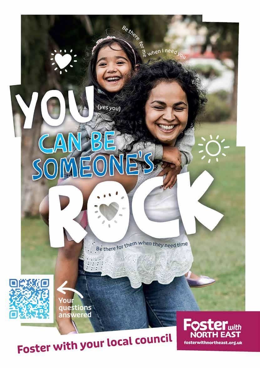 care for children as well and looking at the growth and development, having that skillset has really helped. If anybody is really wanting to think about fostering, they’re on the verge of retirement, or wanting to change their career, or do both… I would say you won’t regret it. It is fabulous, and I’m a really strong advocate for fostering.” Sharon, retired health visitor and local council foster carer Explore how you can be someone’s rock alongside your NHS role or as your next step, visit fosterwithnortheast.org.uk/ healthcare or call 0800 917 771