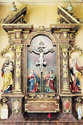 Renaissance-Altar im Haus der g esundheitsdienste mit k reuz und beifiguren ergänzt