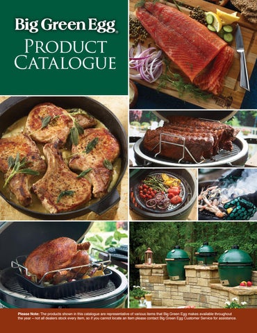 Please Note: The products shown in this catalogue are representative of various items that Big Green Egg makes available throughout the year − not all dealers stock every item, so if you cannot locate an item please contact Big Green Egg Customer Service for assistance. BIG GREEN EGG