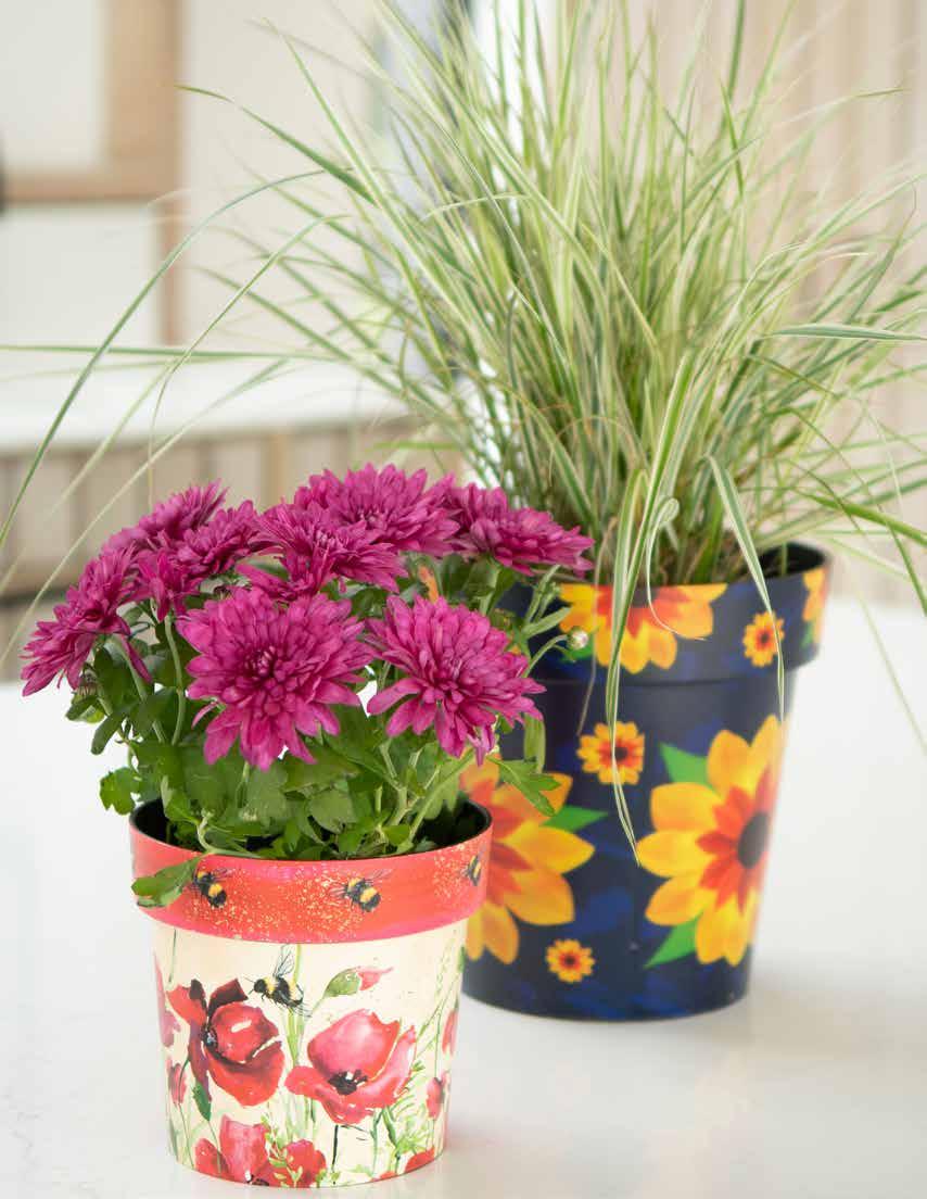 A popular shaped planter in three popular colors. Consist of a mix of bees, butterflies and dragonflies.