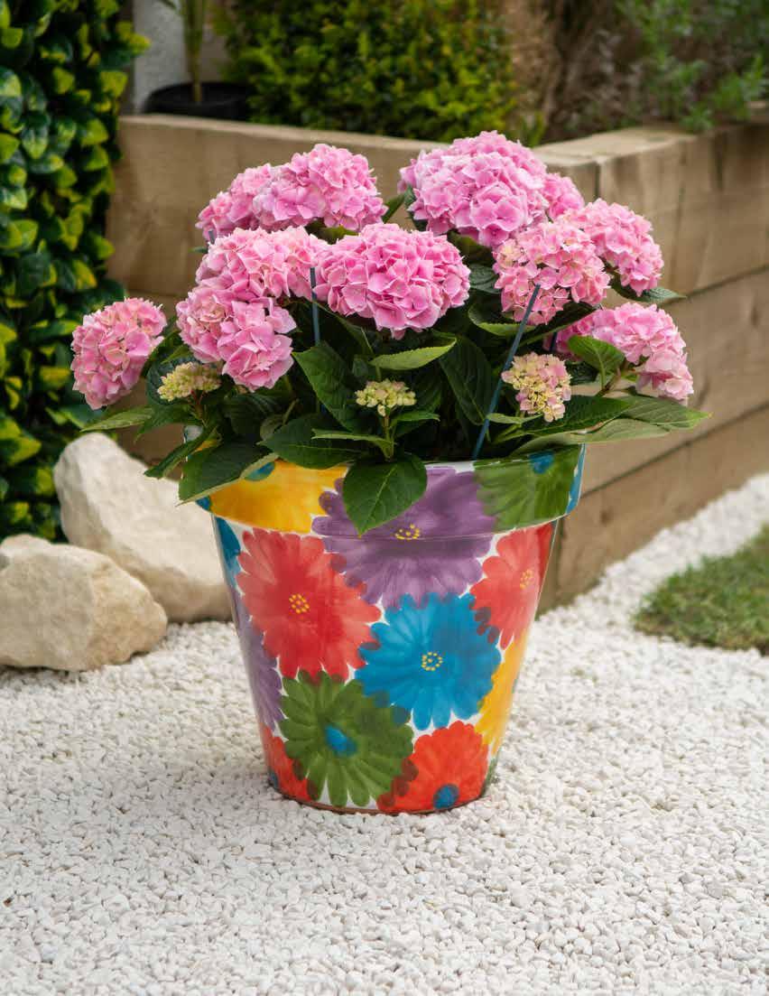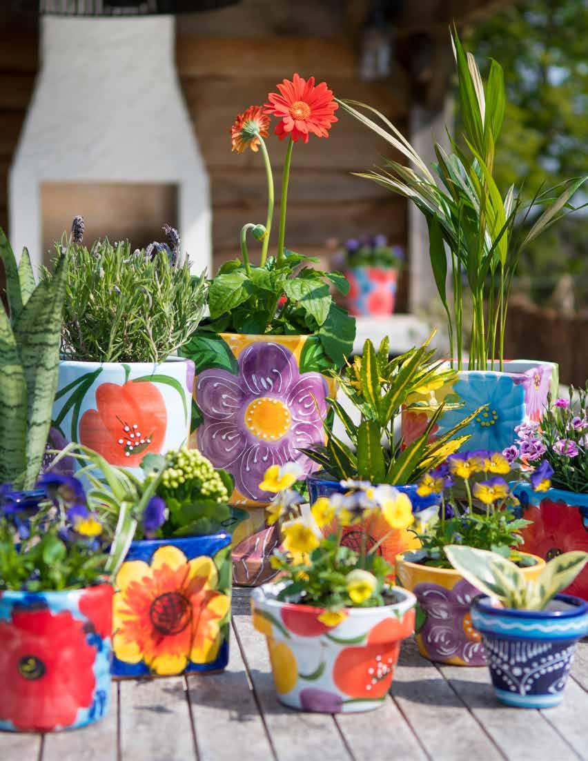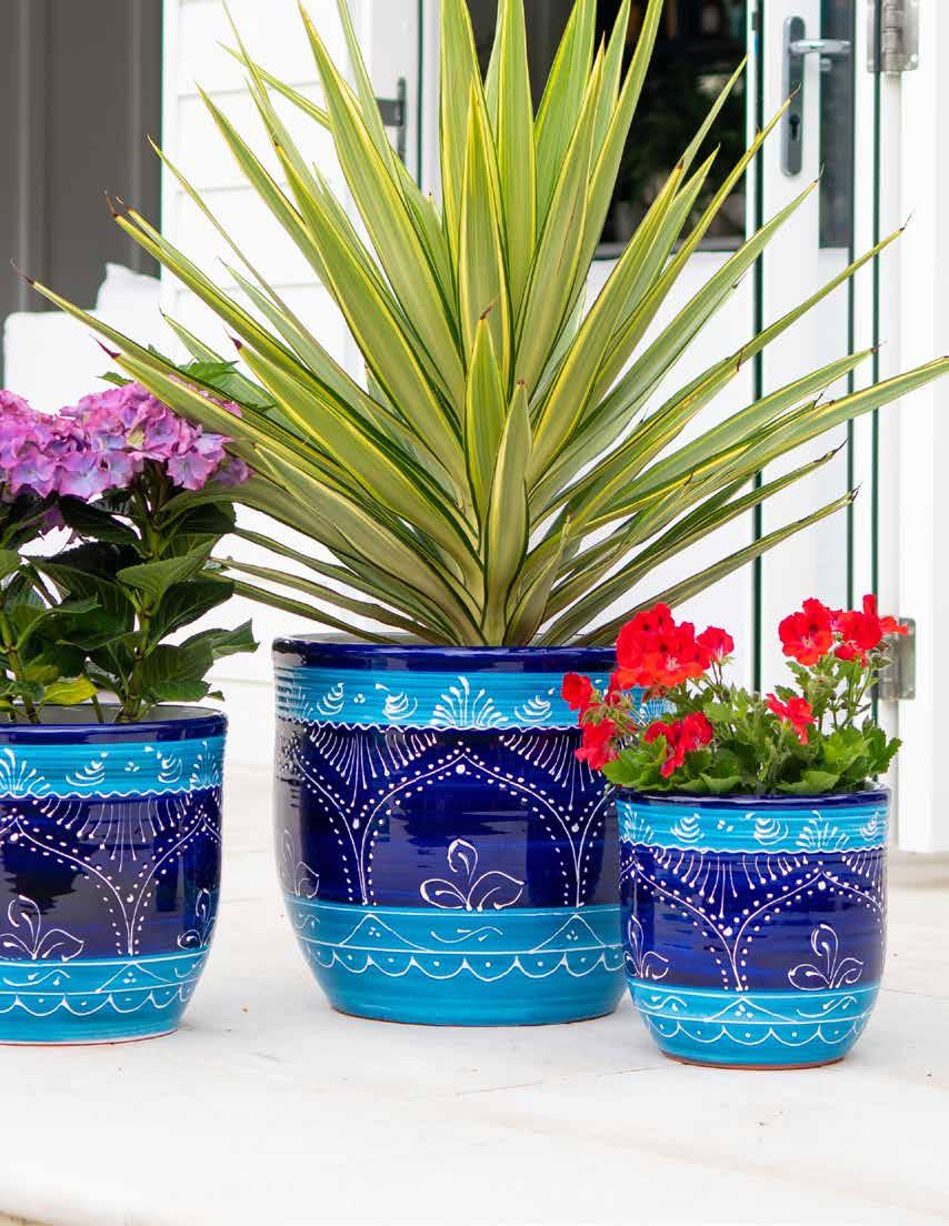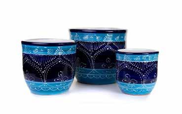 Our ever popular Mediterranean pots are perfect for adding that splash of color to your displays. Using generation old techniques, the pottery is handmade by Artisans in the heart of Spain. Our unique designs are applied to thick terracotta clay pots using both brush stroke and pipette techniques, creating a mixture of beautiful textures. The vibrant and colorful designs bring a modern and stylish design to any garden or home.