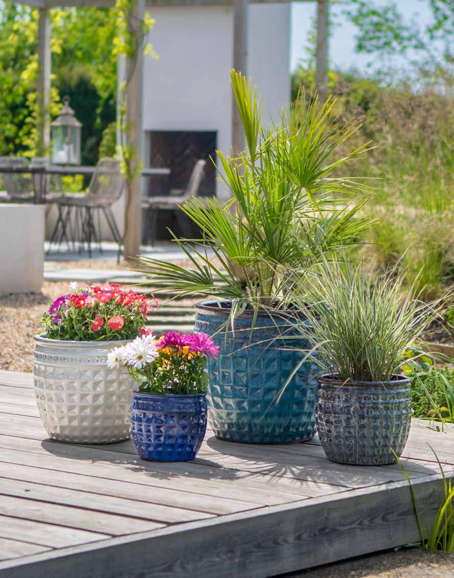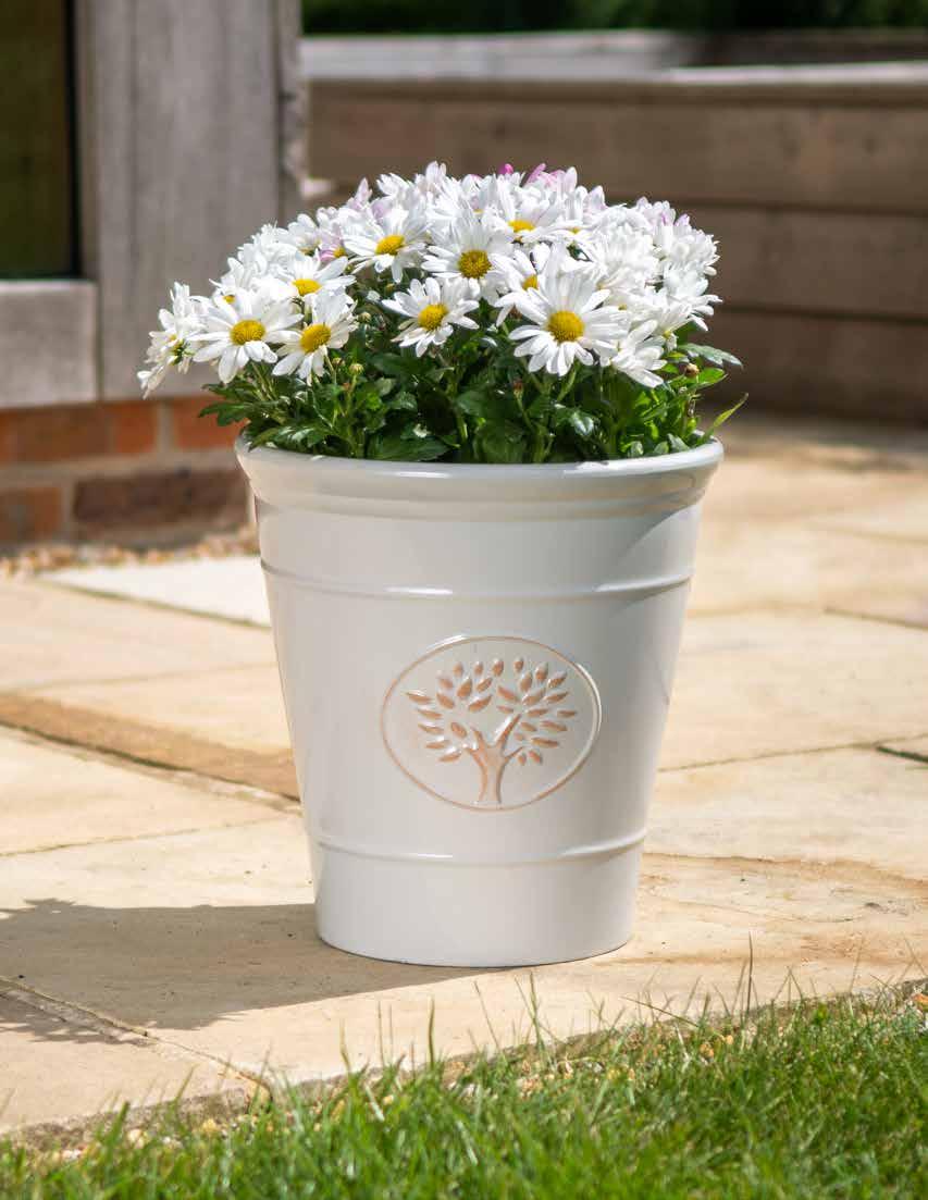 Beautiful new moulded patterns on these lightweight fibre clay planters.