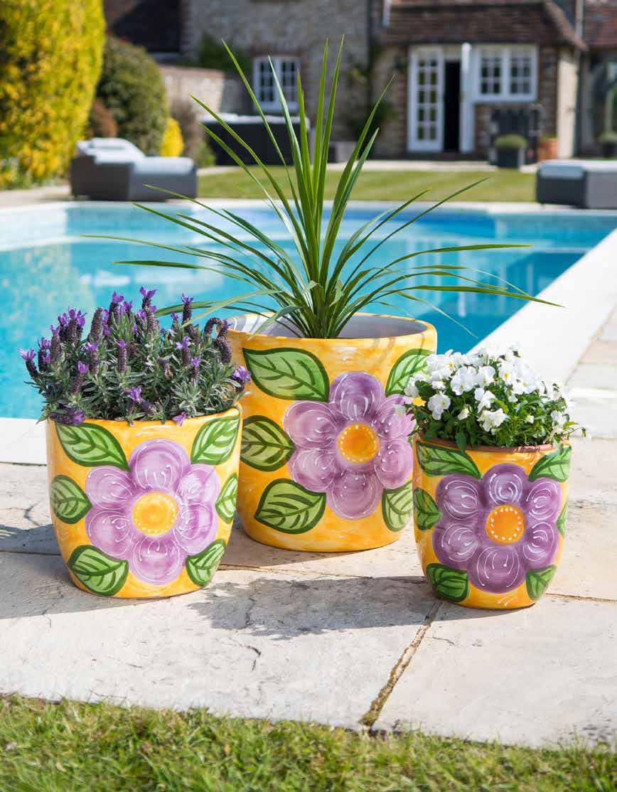 A premium lightweight range of planters in three contemporary pastel colors, with hand painted bees, ladybugs and butterflies.