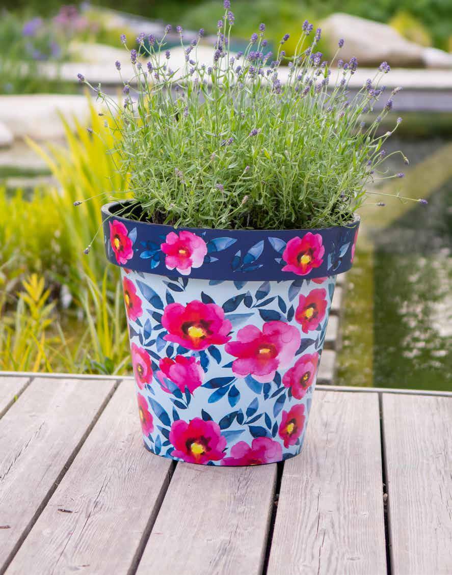 A traditional flowerpot shape in modern pastel colors. Has the look of a ceramic pot but without the weight!