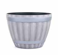 Lightweight pots made from 100% recycled plastic and stone compound.