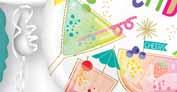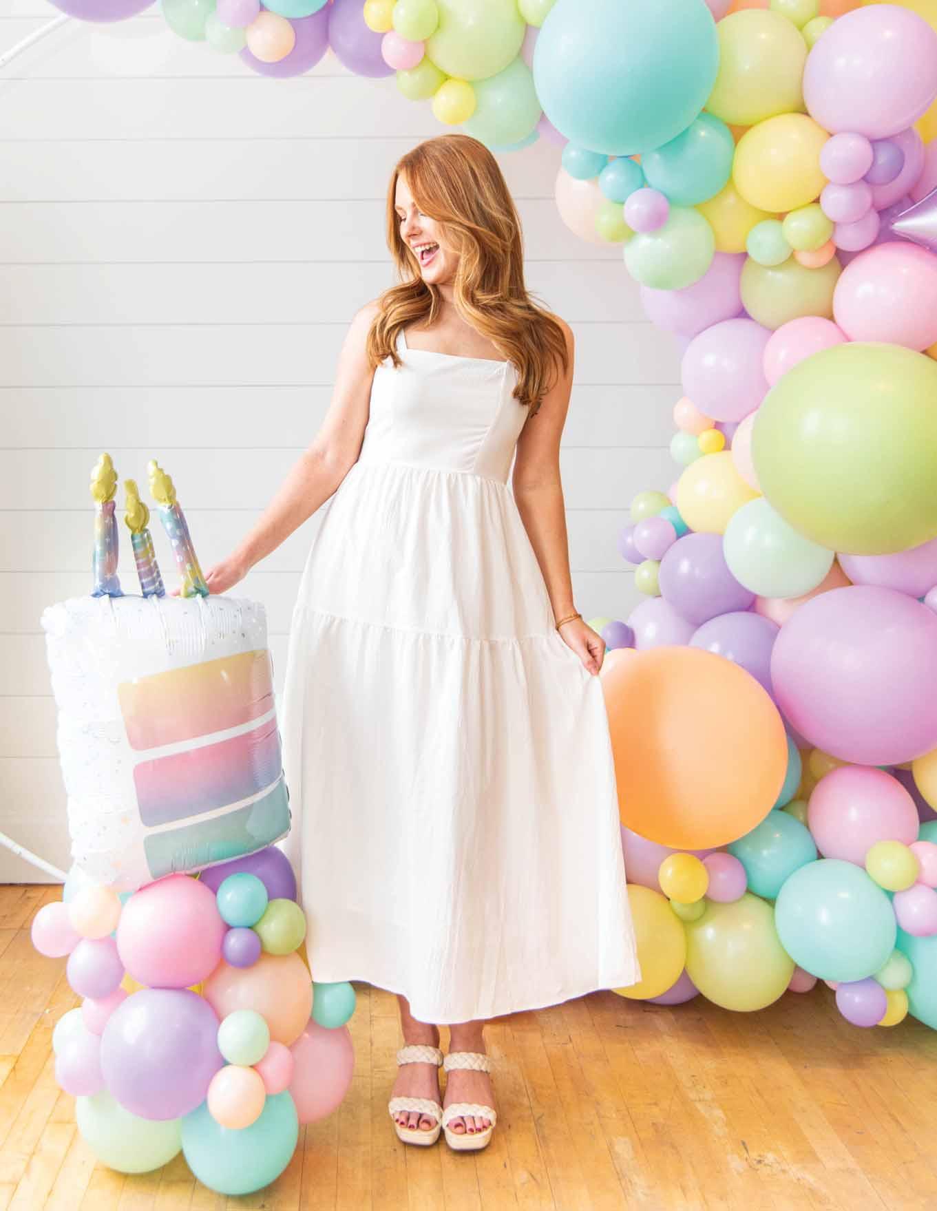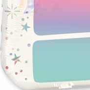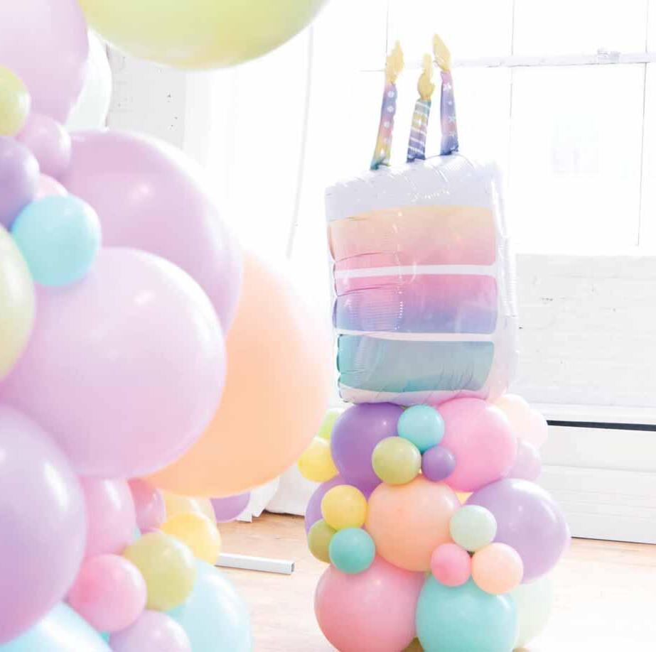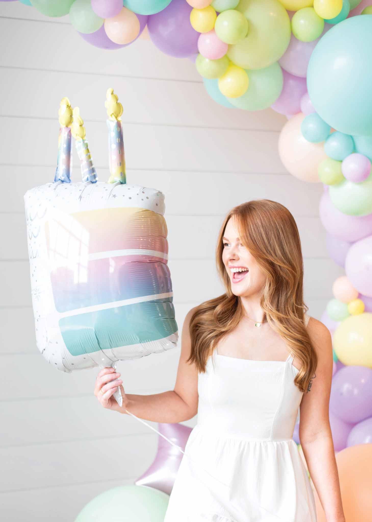 Echoing the trend of transformative surfaces and pearlized finishes, your birthday will shine bright on this holographic film and pastel color palette.