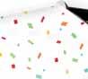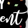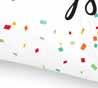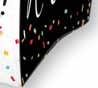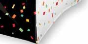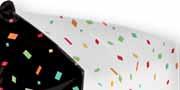 Celebrate a milestone with a timeless staple of black and white with color confetti.