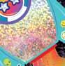 Sparkle like a pop star with this modern retro hit of icons like classic vinyl, butterflies, peace signs and hearts.