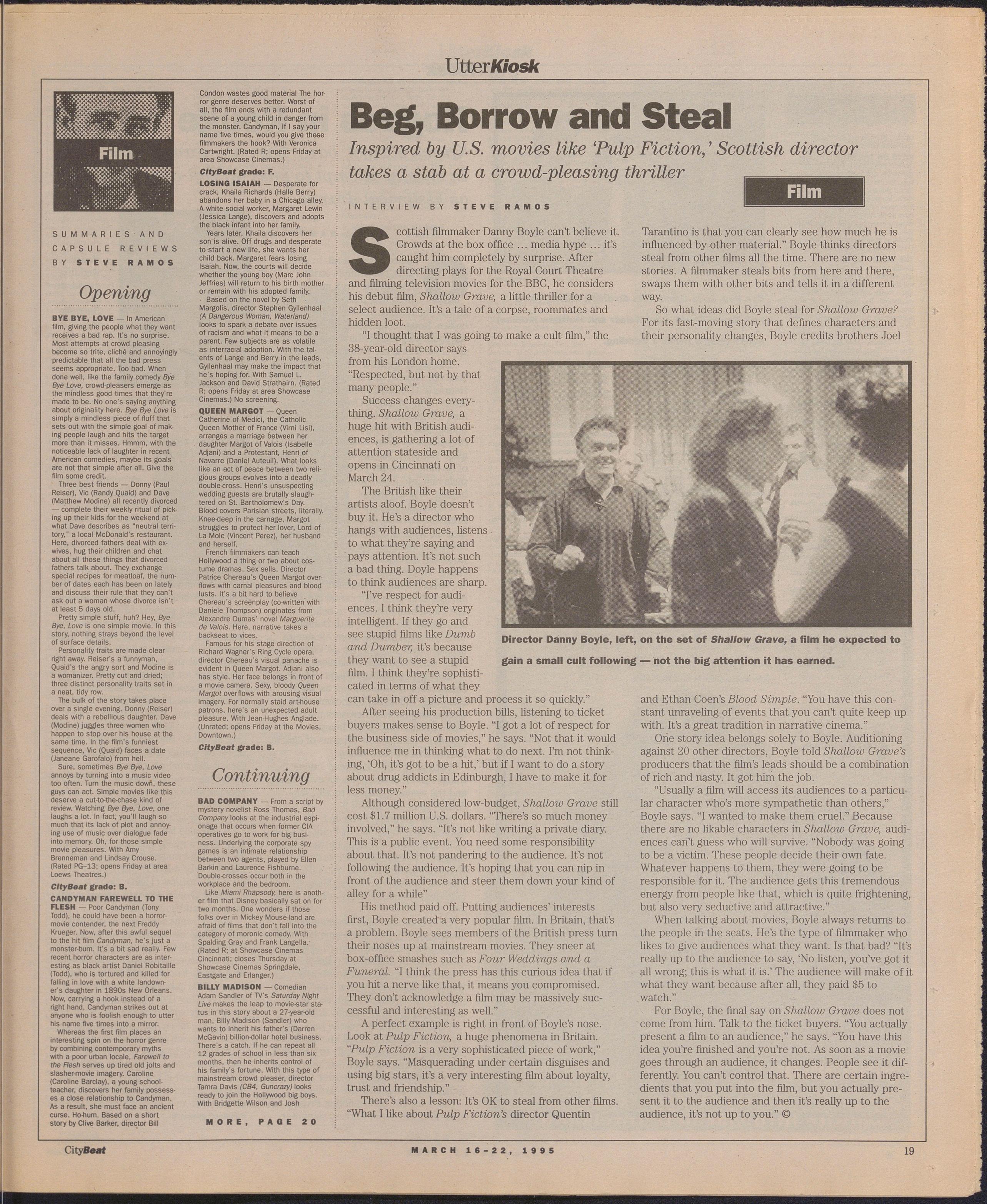 Film Scottish filmmaker Danny Boyle expected a small cult following for Shallow Grave, but has been surprised by its American success 19