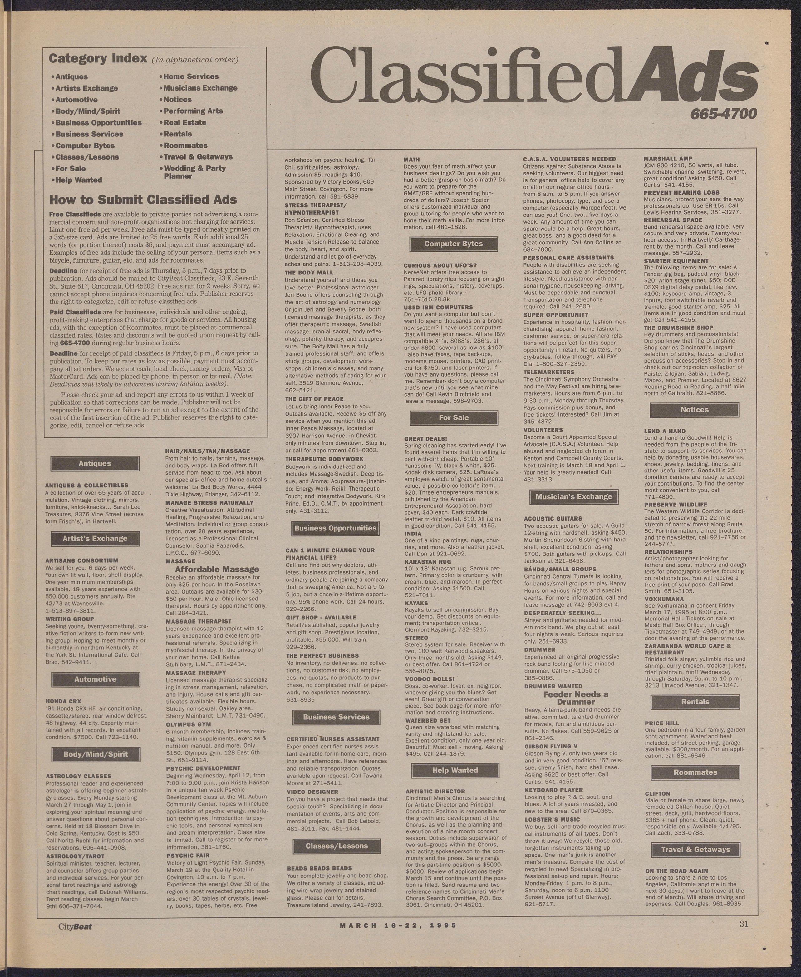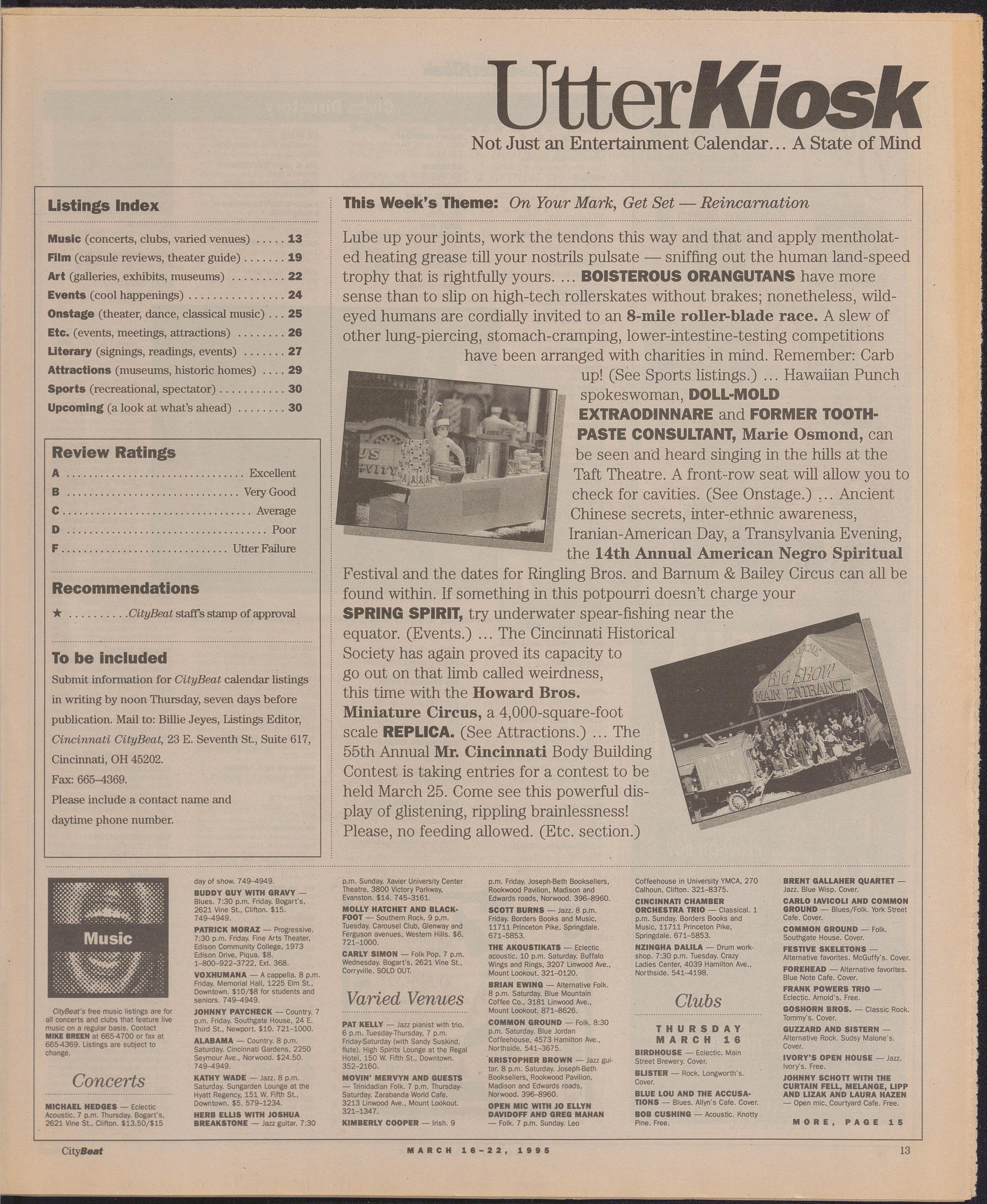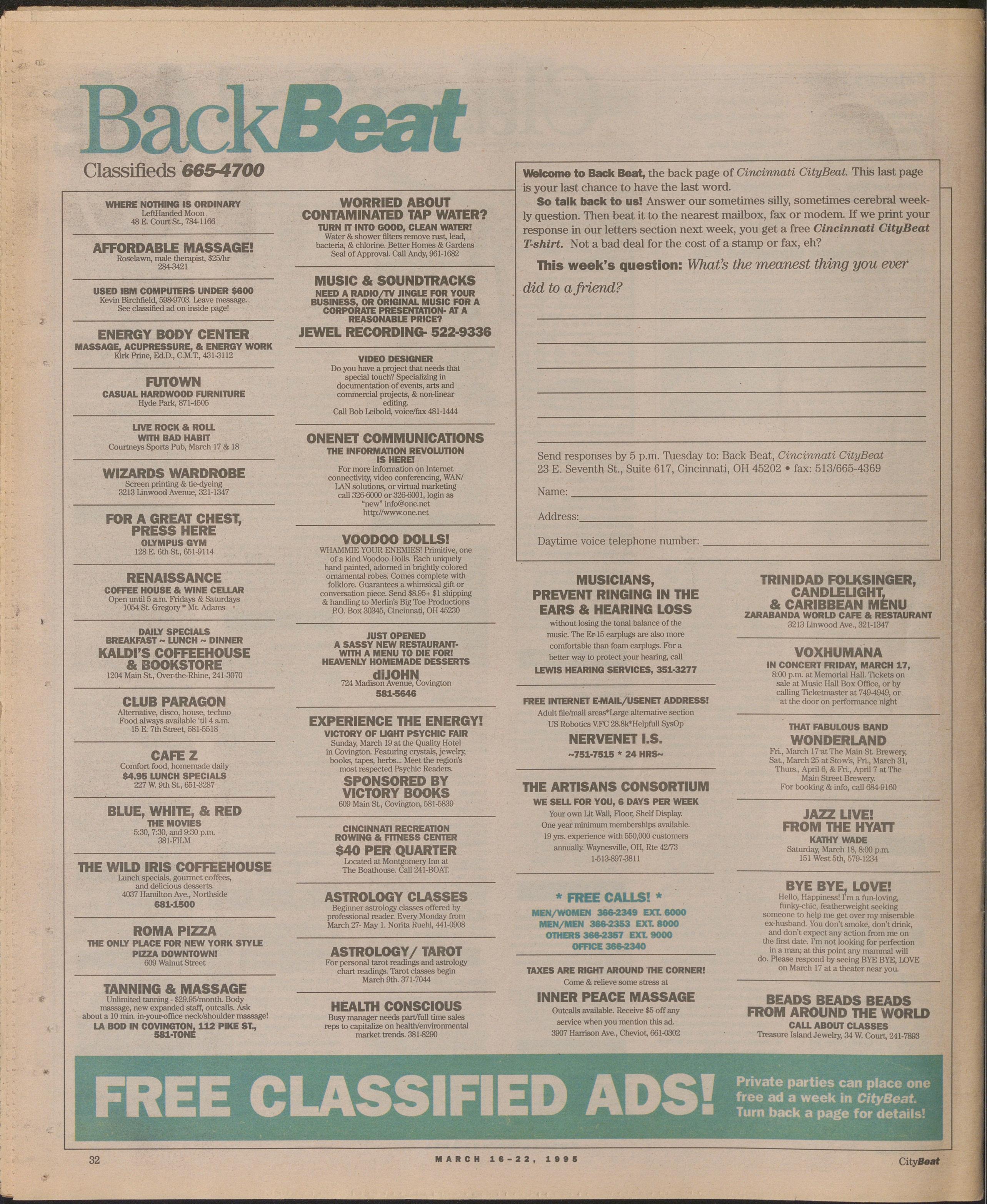 Welcome to Back Beat, the back page of Cincinnati CityBeat. This last page is your last chance to have the last word.
