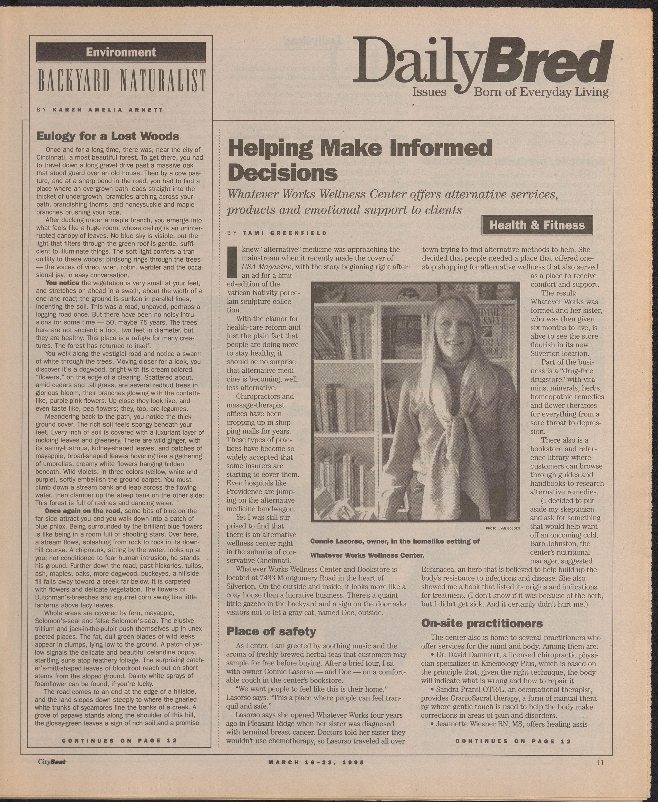 Or join Jeri and Beverly Boone, both licensed massage therapists, as they offer therapeutic massage, Swedish massage, cranial sacral, body reflexology, polarity therapy, and accupresThe Body Mall has fully trained professional staff, and offers study groups, development workshops, children’s classes, and many alternative methods of caring for yourself. 3519 Glenmore Avenue, 662-5121.