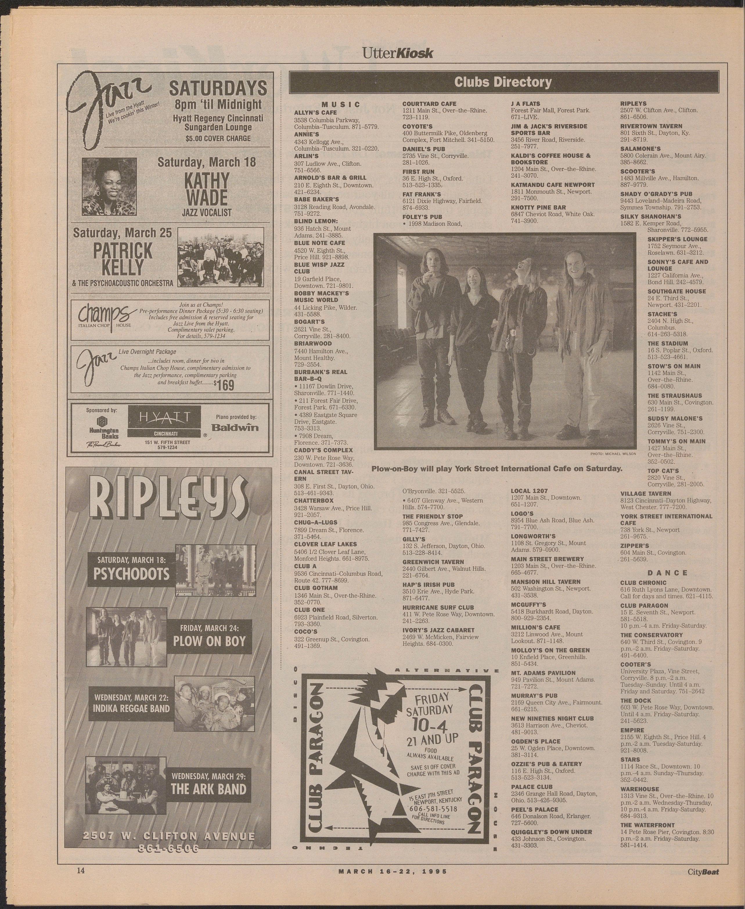 Send responses by 5 p.m. Tuesday to: Back Beat, Cincinnati CityBeat 23 E. Seventh St., Suite 617, Cincinnati, OH 45202 fax: 513/665-4369
