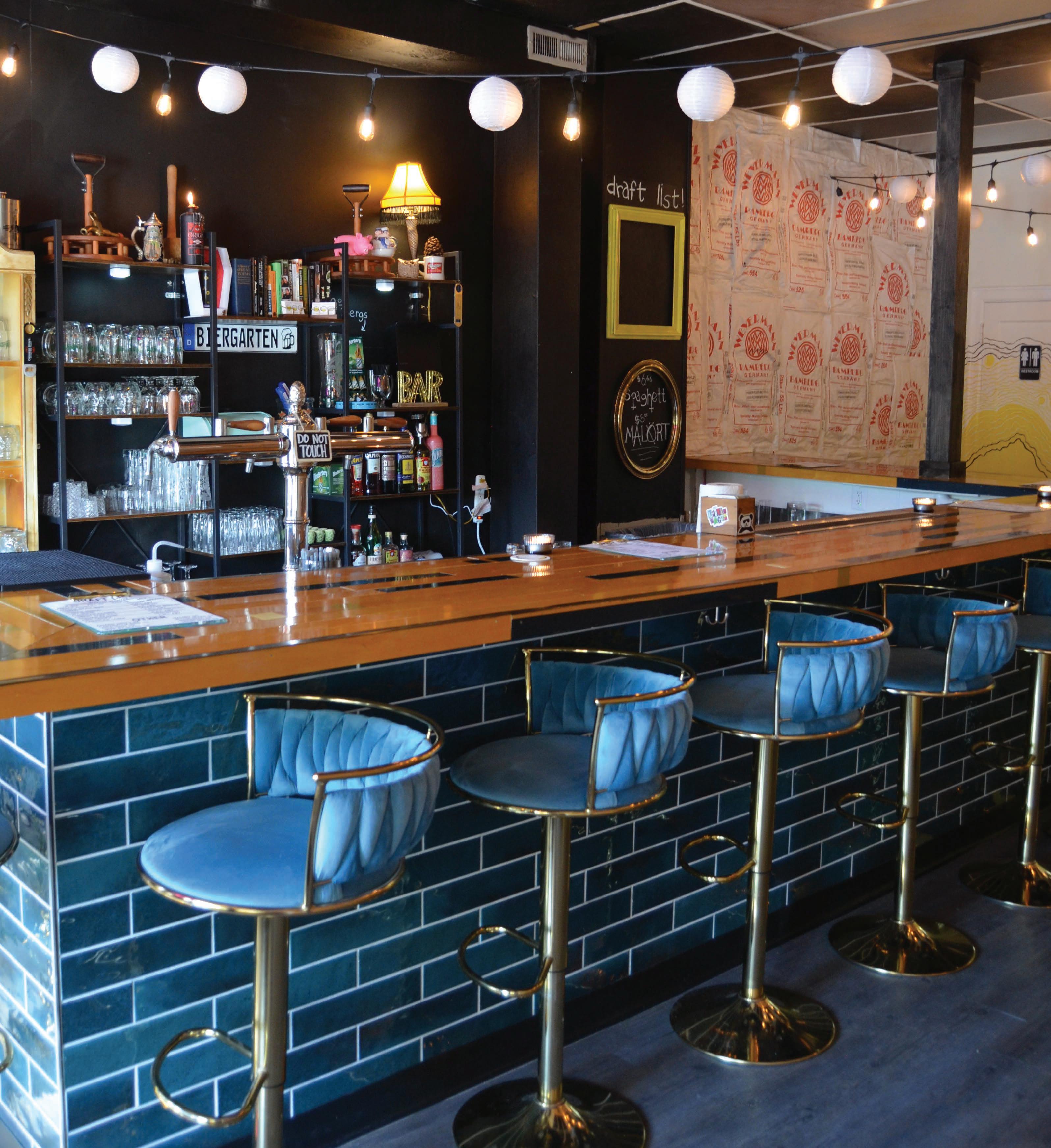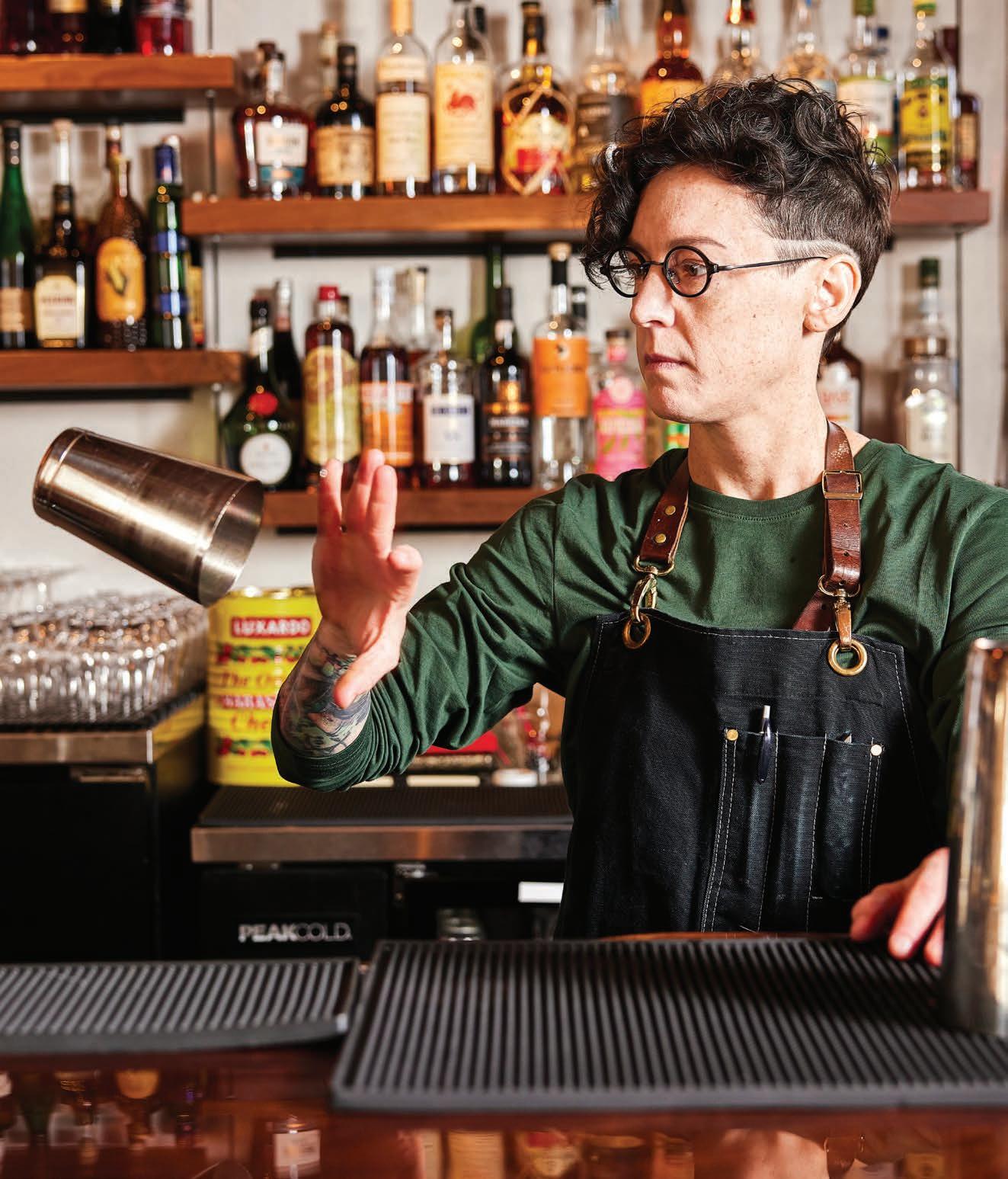 opposite page: the bar at little lager; this page, from top: manny negron, owner at little lager; a foamy milk shot at little lager