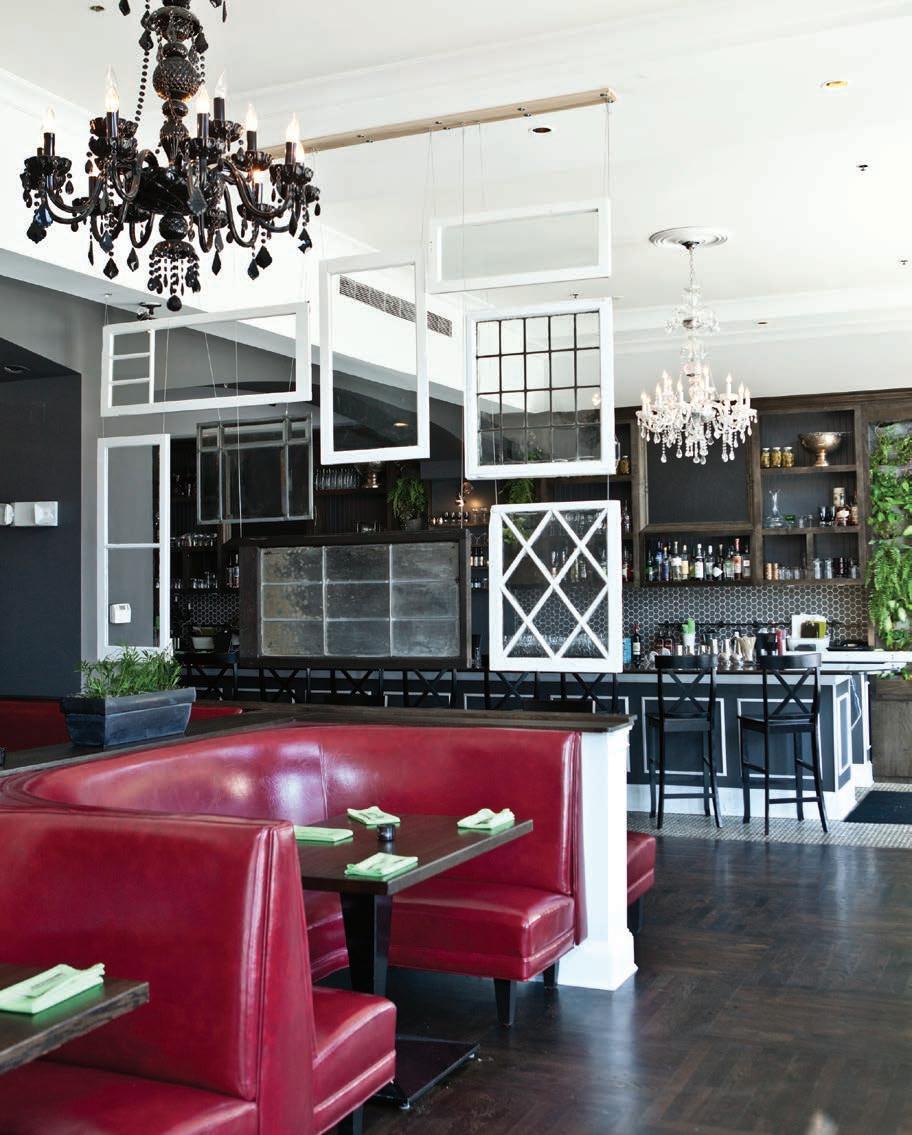 this page, from top: the bar at cabin at judy creek, blood & sand; opposite page: the bar at midwestern meat & drink