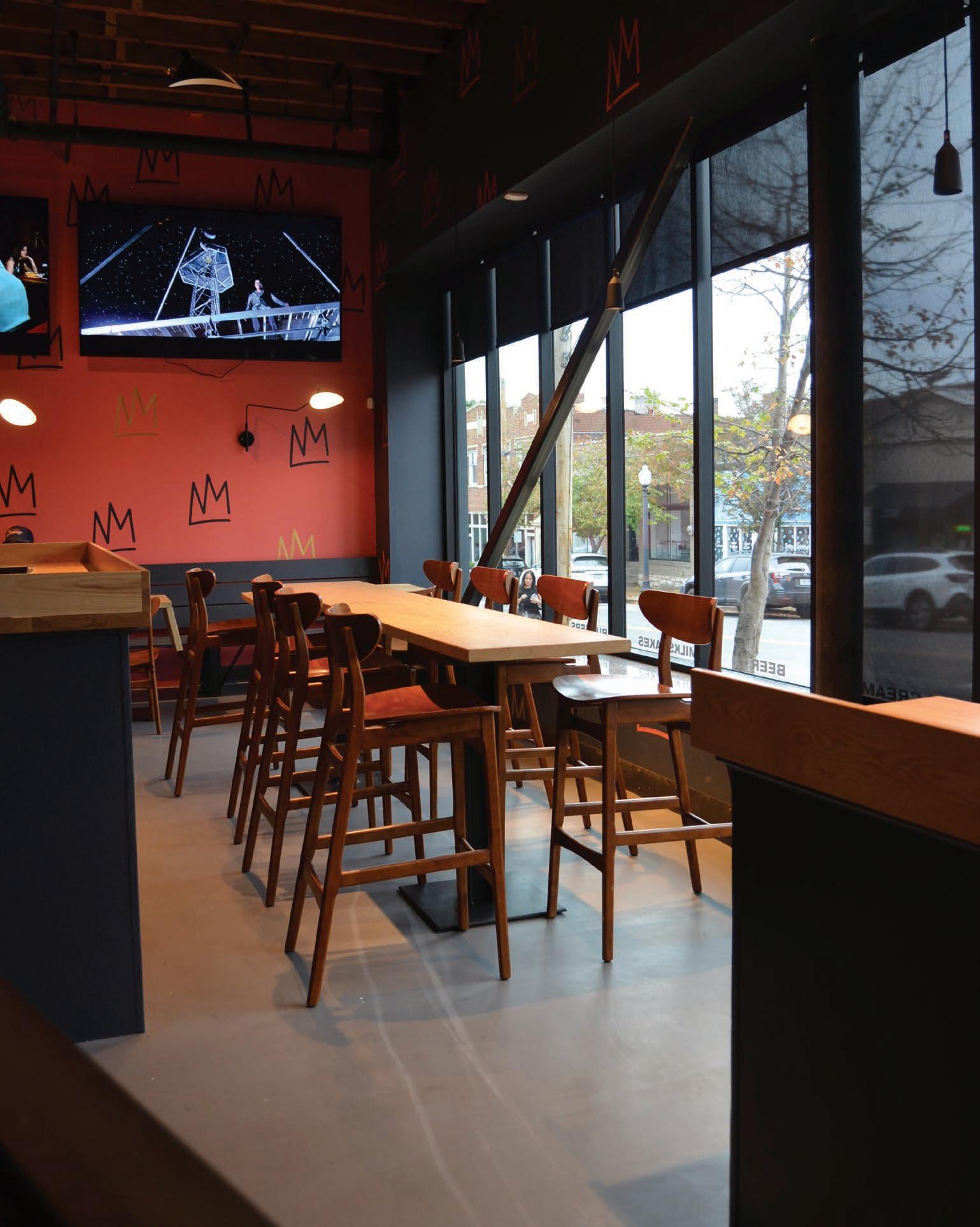 At Burger Champ, the new sister restaurant to Maplewood neighbor Pizza Champ, Chris Kelling has created a casual, family-friendly burger restaurant that aims to please. Smash burgers are the style, but flexibility is baked in, with a build-yourown option that includes beef, turkey and plant-based burgers. However, the house specialties are the ones to try, like the mushroom Swiss, topped with Swiss cheese, dijonnaise and roasted mushrooms. Structural integrity is an asset: The mushrooms are evenly distributed throughout the burger, meaning nothing falls out when you take a bite. The white cheddar jalapeno burger was also a standout, with measured heat from a jalapeno relish tempered by a luscious white cheddar spread and aioli. Don’t miss their milkshakes for a sweet finish: Flavors like the peanut butter & strawberry jelly or the s’mores with graham cracker crumbs and toasted marshmallows are sure to impress, but the classic cookies & cream was exactly right.