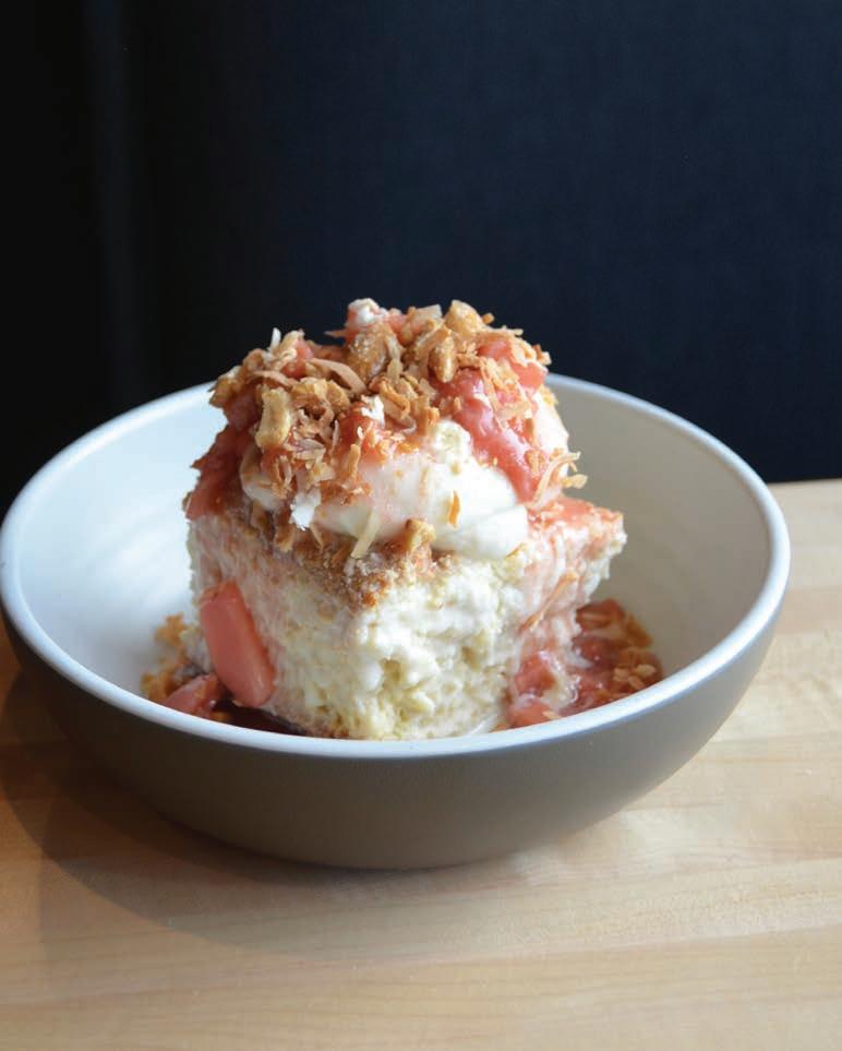 Take Root Hospitality’s Taqueria Morita launched in 2022 as a warmweather pop-up concept on Vicia’s patio, then moved to Winslow’s Table for the colder months. Now, it finally has its own space in the Central West End – a casual spot offering walk-in seating only and ordering via QR code at your table. The smoked carrot tacos are delicious, with smokiness to the fore and an herbaceous charred tomatillo and dill salsa. The spicy pork carnitas tacos are topped with a viscous smoked habanero-pineapple sauce that balances sweetness and heat, along with pickled red onion and crispy chicharron for textural counterpoint. Margaritas may be the go-to choice here, but the La Fresa with gin, strawberry, guava, lime and club soda is a refreshing, lightly sweet sipper that complements the food well. For dessert, try the succulent coconut tres leches cake with mezcalpoached strawberry, toasted almonds and almond cremosa.