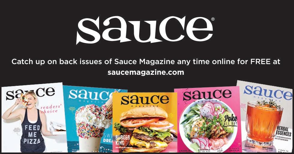 Rather than searching for a copy on stands around town, you can now receive the issue straight to your inbox every month. Scan the QR code or visit saucemagazine.com/digitalissue/join to subscribe to the magazine online, and keep an eye on our website and social media for more foodie content. Print magazine subscriptions are available for $40/year.