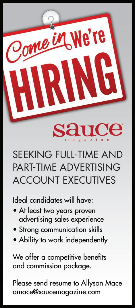 To place advertisements in Sauce Magazine contact the advertising department at 314.772.8004 or sales@saucemagazine.com.