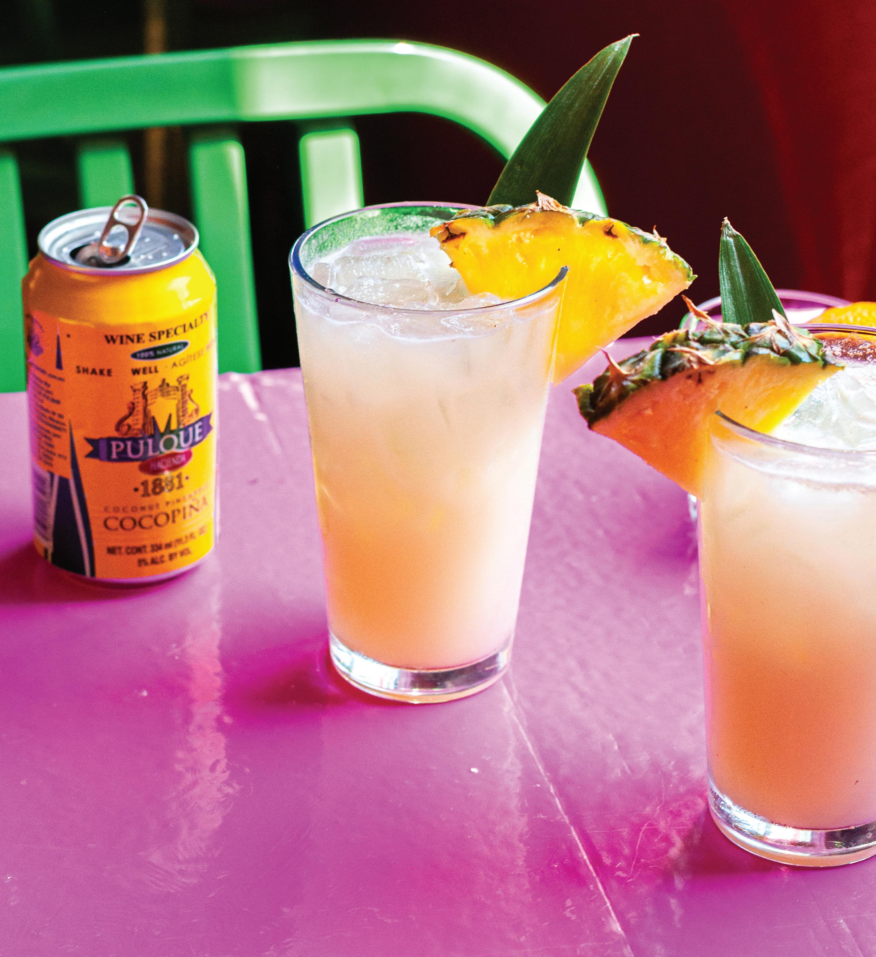 Pulque is an alcoholic beverage made from the fermented sap of the maguey plant (a kind of agave) that’s been produced in Mexico for more than 2,000 years. Fizzy, low-ABV and slightly sour with a cloudy, milky color, it’s featured prominently in our current favorite drink at Mezcaleria Las Chupacabras, where canned curado de pulque (pulque blended with fruit and/or sweetener) is mixed over ice with a shot of Juerte Destilado de Pulque, an aged, distilled spirit also made from maguey. It’s available in three flavors, but we’re partial to pineapple-coconut – think piña colada vibes. The resulting cocktail tastes tropical but with a sourness and some smoky bitterness from the mezcal that puts the whole drink in balance.