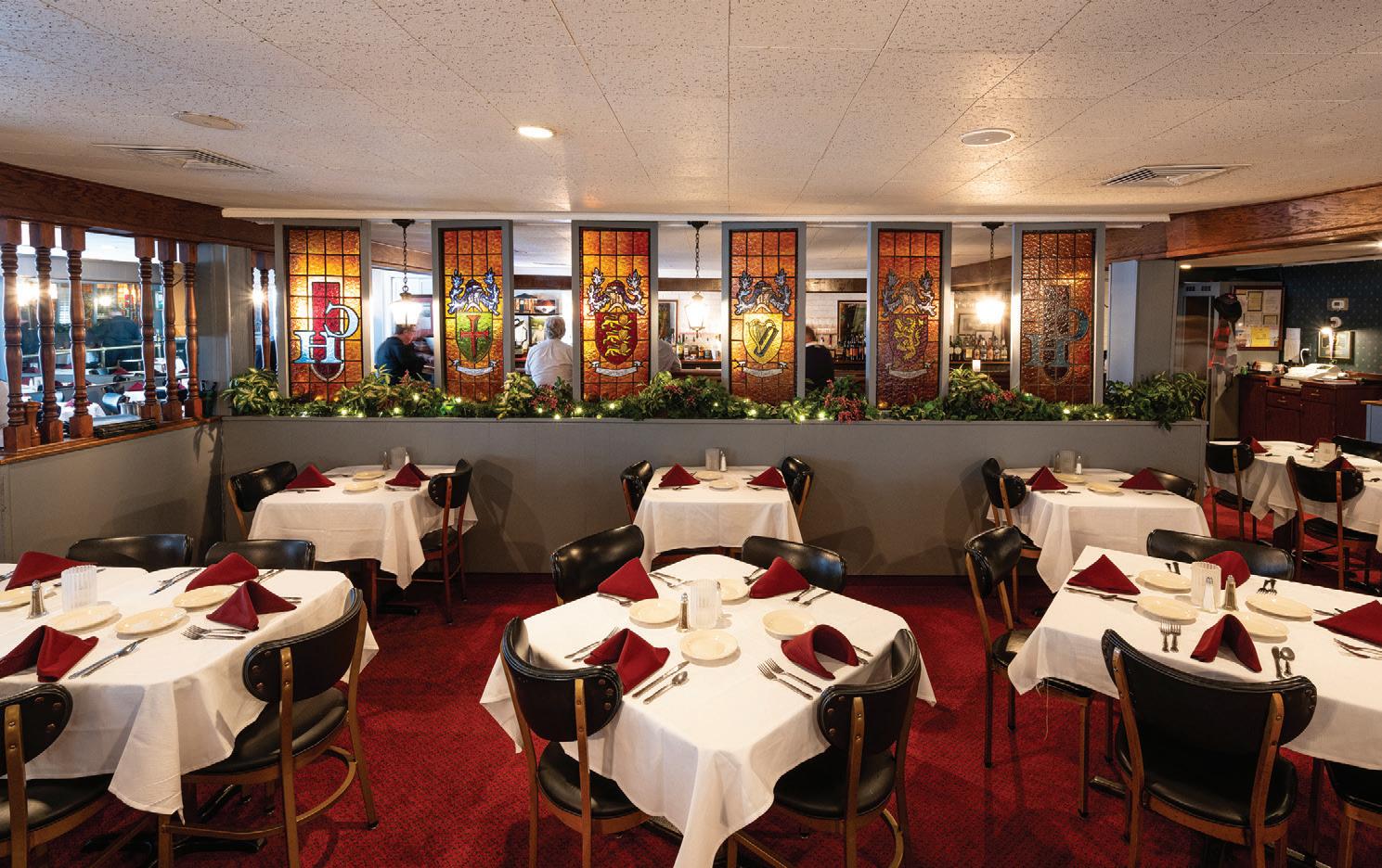 The Angelos brothers never looked back. “Back in the ’80s and ’90s, we were four deep at the bar,” George said. “People would wait an hour and a half for a table.” On weekends, a pianist would sit at the piano in the corner by the entrance and entertain guests. The piano is gone, but most of what made Charcoal House a favorite haunt in earlier eras remains intact, from the dining room’s whitetableclothed elegance to evergreen signatures like the Steak by George, a center-cut filet mignon served with onion rings. In addition to the steaks, there are dishes like the rack of Colorado lamb with housemade rosemary sauce, Norwegian salmon and lobster.