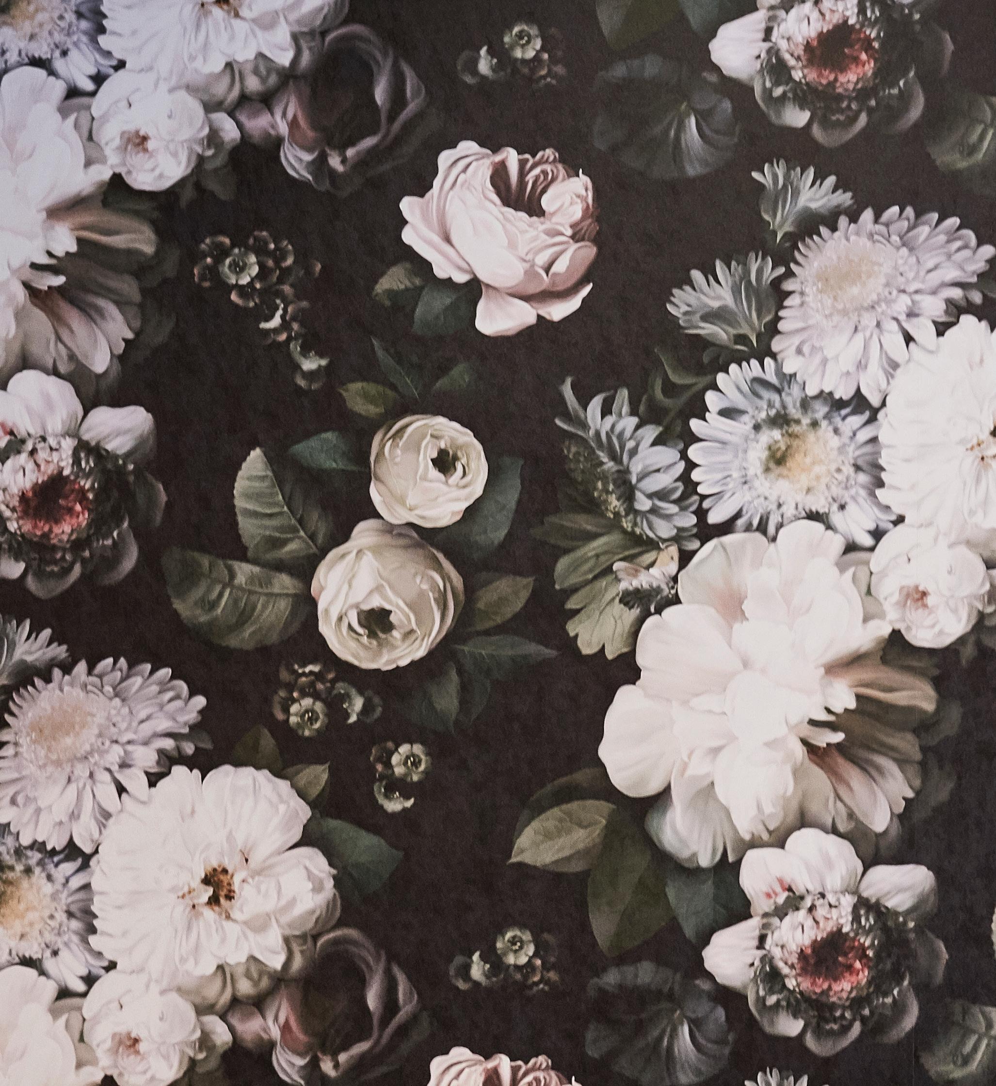 The stunning wallpaper. Massive, baroque blossoms in muted colors feel as if they’re about to burst from the wall. It’s romantic, it’s dramatic – what can we say, it gives us all the feels.