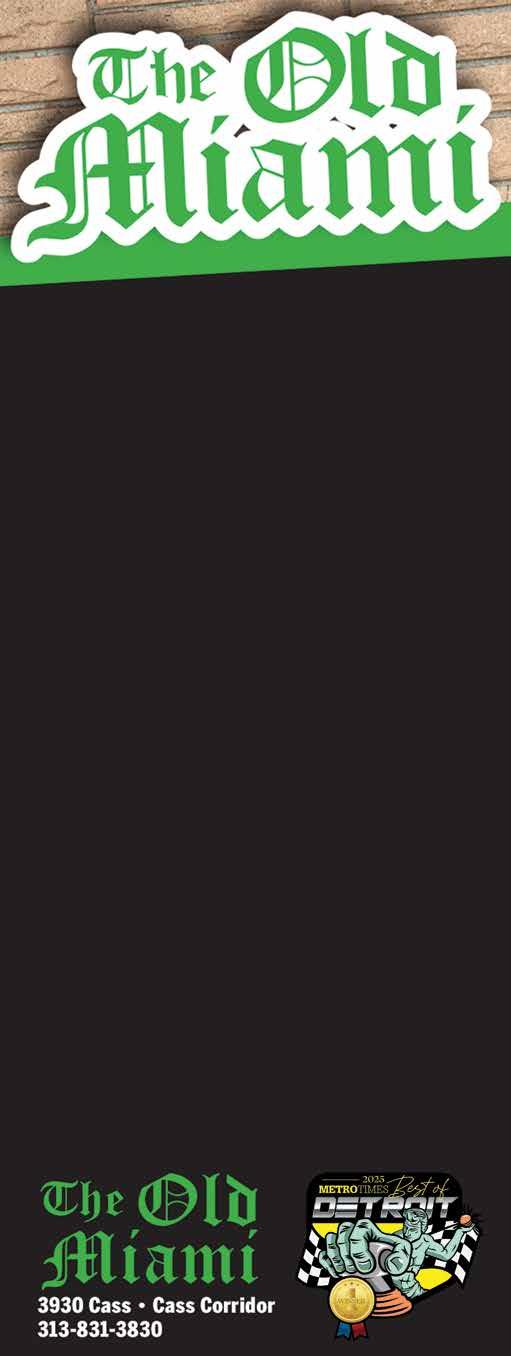 Ferndale, MI 48220 metrotimes.com GOT A STORY TIP OR FEEDBACK? tips@metrointhed.com or 313-202-8011 WANT TO ADVERTISE WITH US? QUESTIONS ABOUT CIRCULATION? 313-961-4060 GET SOCIAL: @metrotimes DETROIT DISTRIBUTION