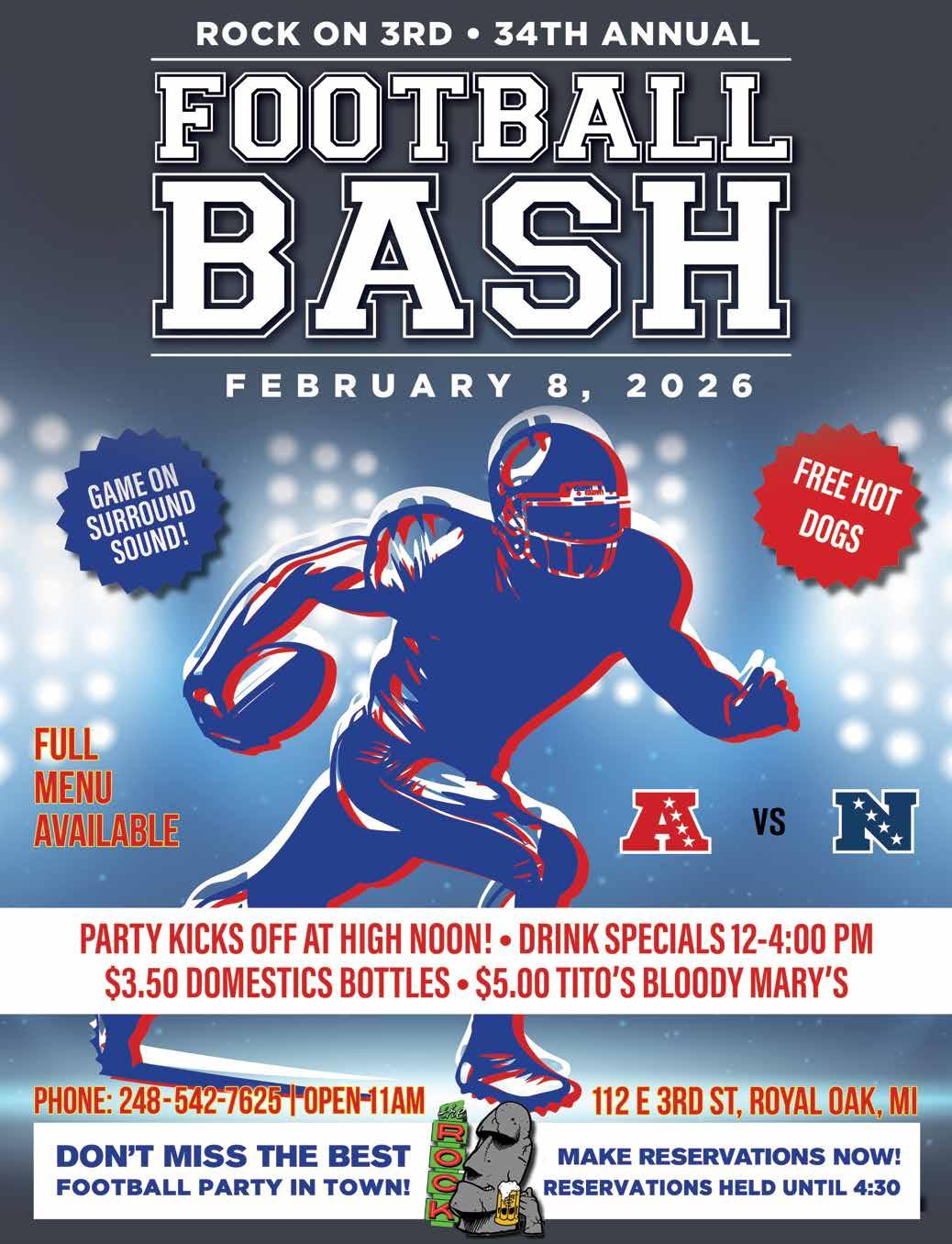 JOIN US FOR THE BIG GAME! PRE-GAME & WATCH PARTY 4P/NO COVER