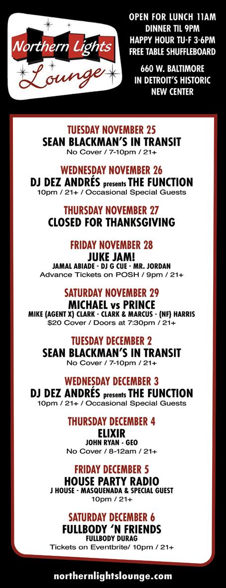 Andres 9 pm-2 am; Northern Lights Lounge, 660 W. Baltimore St., Detroit; no cover.