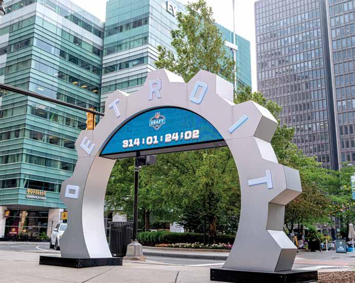 The NFL Draft Experience presented by Rocket Mortgage will take over Hart Plaza for the duration of the draft like a festival. Attractions include games like a 40-yard dash and vertical jump. The grounds will include a replica of the official NFL Draft stage and the Vince Lombardi