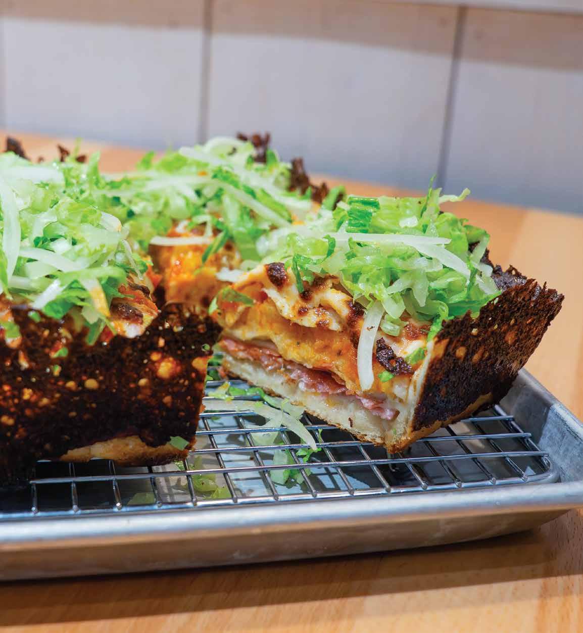 This thing is a monster. It starts with Big Mouth co-owner Matt Frentzel’s focaccia – fitting, since Frentzel once worked at Porano – used as the base for a deep, double-layered pie. The first layer gets loaded with Italian charcuterie, pepperoncini aioli and plenty of provolone before it’s sent through the oven. Then a pizza “lid” goes on top, followed by tomato sauce and mozzarella, plus a final hit of fresh lettuce and raw onion for that perfect hot-and-cold contrast.