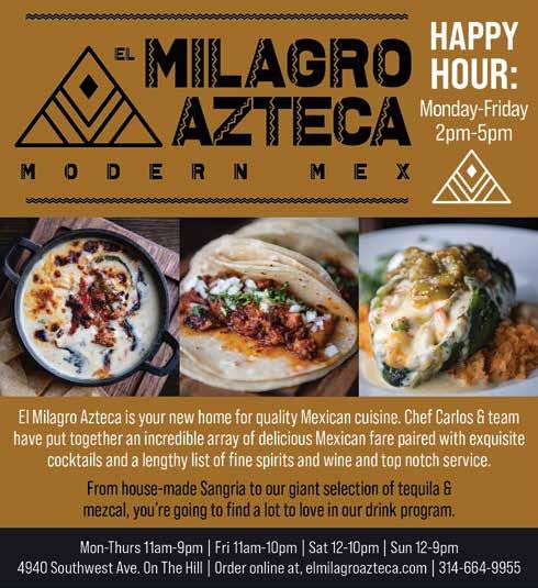 The Le Meridien hotel in Clayton has kicked off its holiday pop-up, The Chalet. This terrace overlook provides views of downtown Clayton, as well as cozy food, drink and games. On Fridays and Saturdays from 4 to 9 p.m., guests can enjoy live music and buildyour-own s’mores included in the admission ticket. They’ll have a special Chalet beverage menu available for purchase, with drinks like mulled wine and gooey butter hot chocolate. STL Caviar Cart will be on-site select nights, and guests also have the option of renting a timeslot for The Chalet’s curling rink. Get tickets online. Private, professional photo sessions are also available, and on Dec. 21, Reels on the Rooftop will be showing a double-feature of “Elf” and National Lampoon’s “Christmas Vacation.”