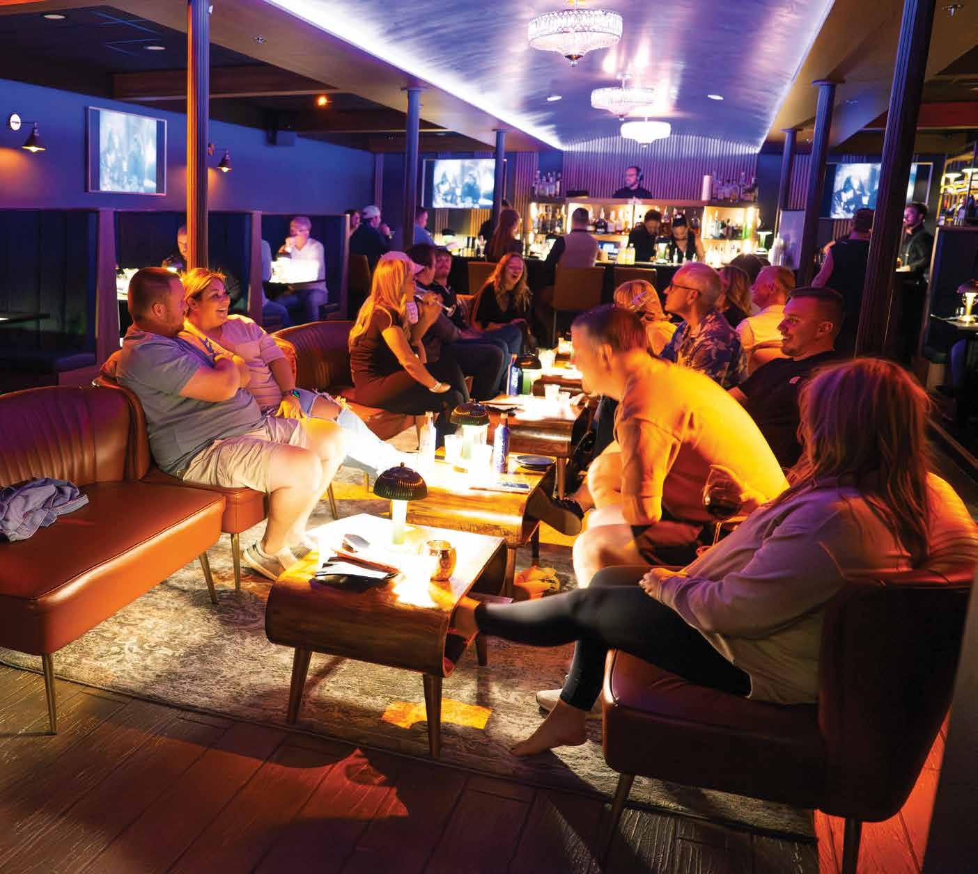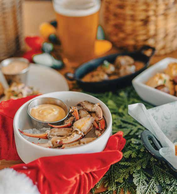 property can deliver. While the location has plenty of outdoor seating, popular in the warmer months, Cocktails and Claws takes place purely inside. The dining area is decked out in red and white, and guests have a perfect view of a City Wide holiday tree. “As soon as the customers walk in, we just wanted it to be explosive for them.”